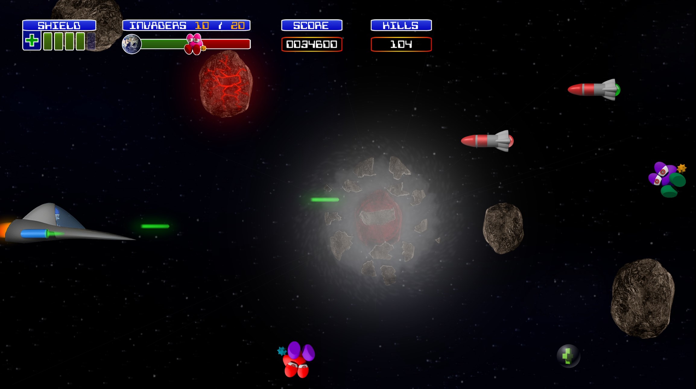 Rid the galaxy of menacing Evil Shrooms in this fast-paced, action-packed, arcade-style space shoot-em-up. Intense button-smashing action, vibrant graphics, and an utterly insane swarm of enemies and bosses await you.