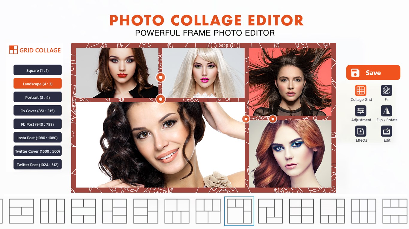 Classic grid collage provide you with various of photo collage templates. You can also customize the backgrounds of frames. Make your images look cooler.