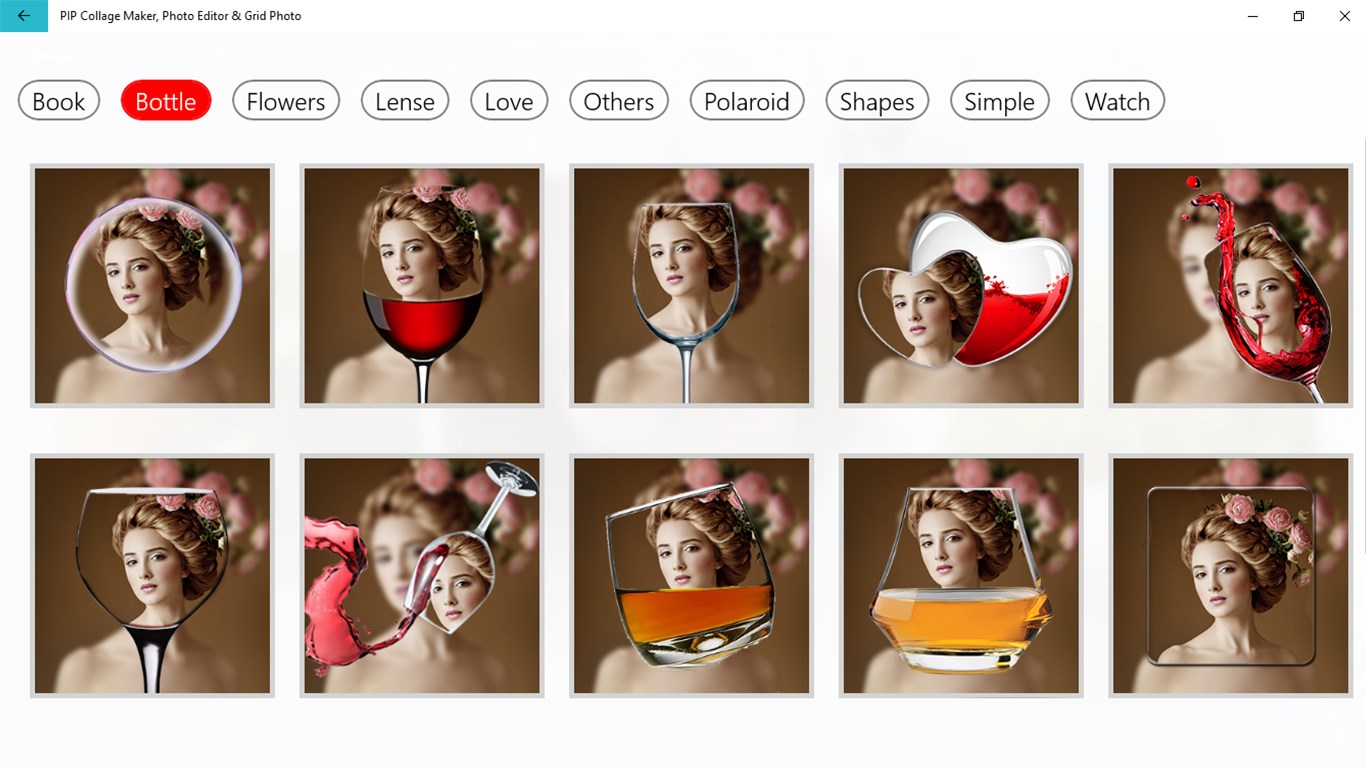 Crystal Bottle Pattern, Frames Series, Simple Style and more……All photo collages are especially for you. Share it to your Moments in one tap, see what your friends gonna say!