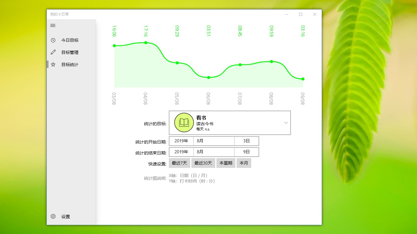 My Daily Goals is to set up a reminder plan for your daily affairs and urge you to form a habit by checking in and punching in.