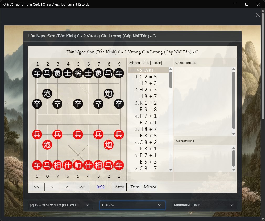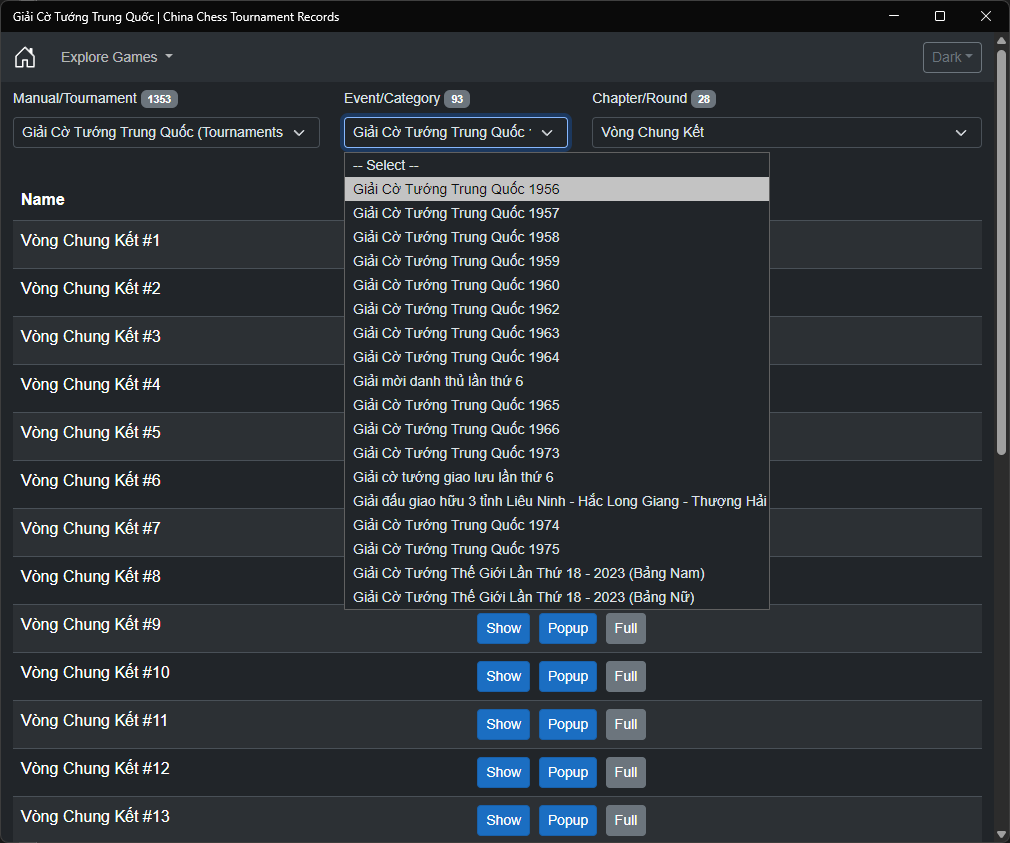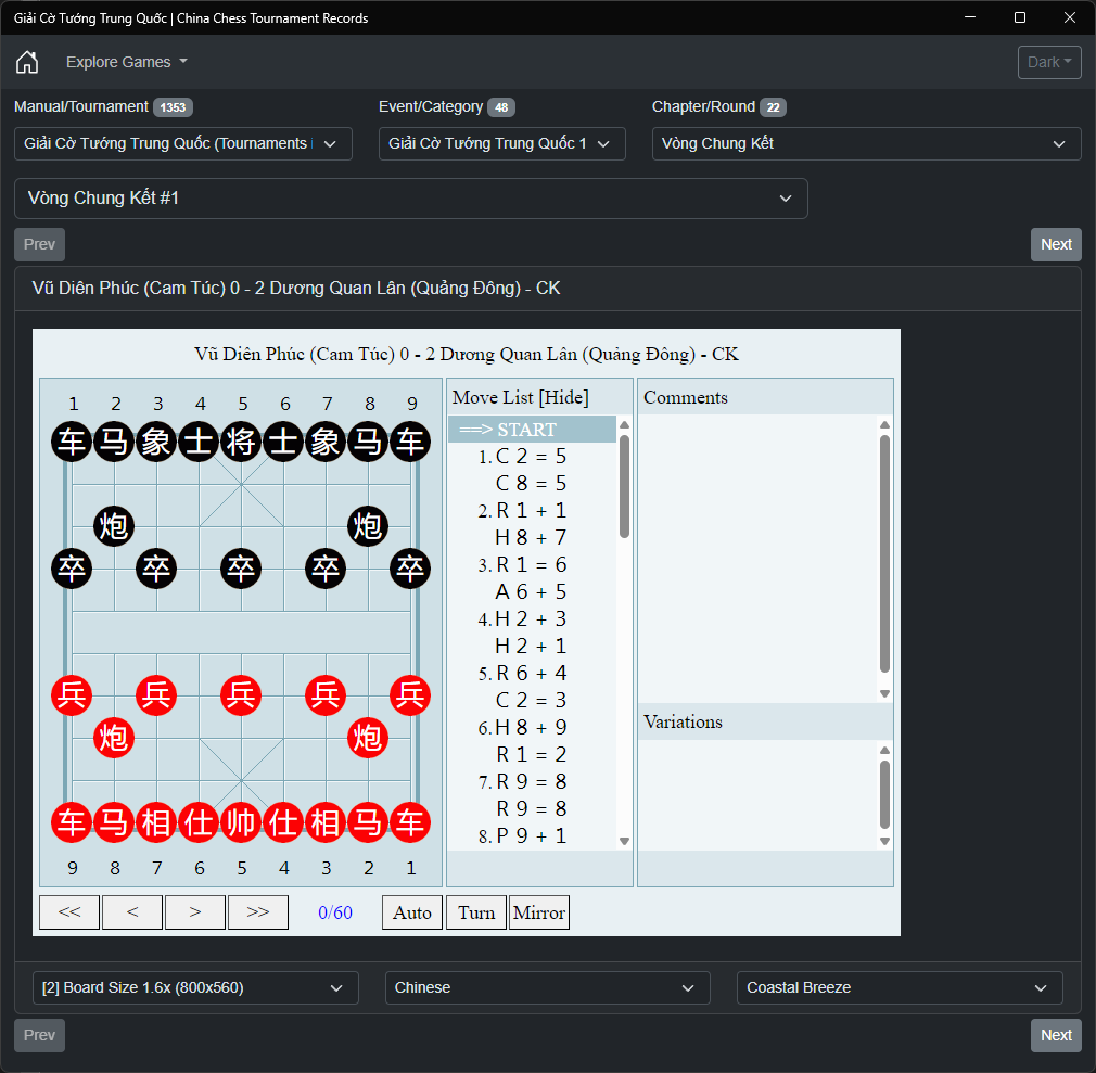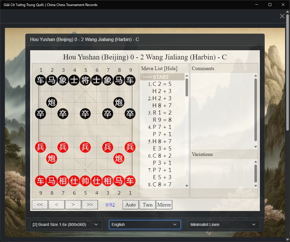 Immerse yourself in the rich history of competitive Xiangqi through this unique archive of tournament games, bridging the classical era of Chinese Chess with contemporary championship play.
