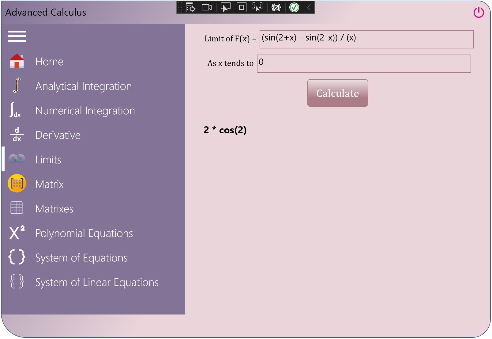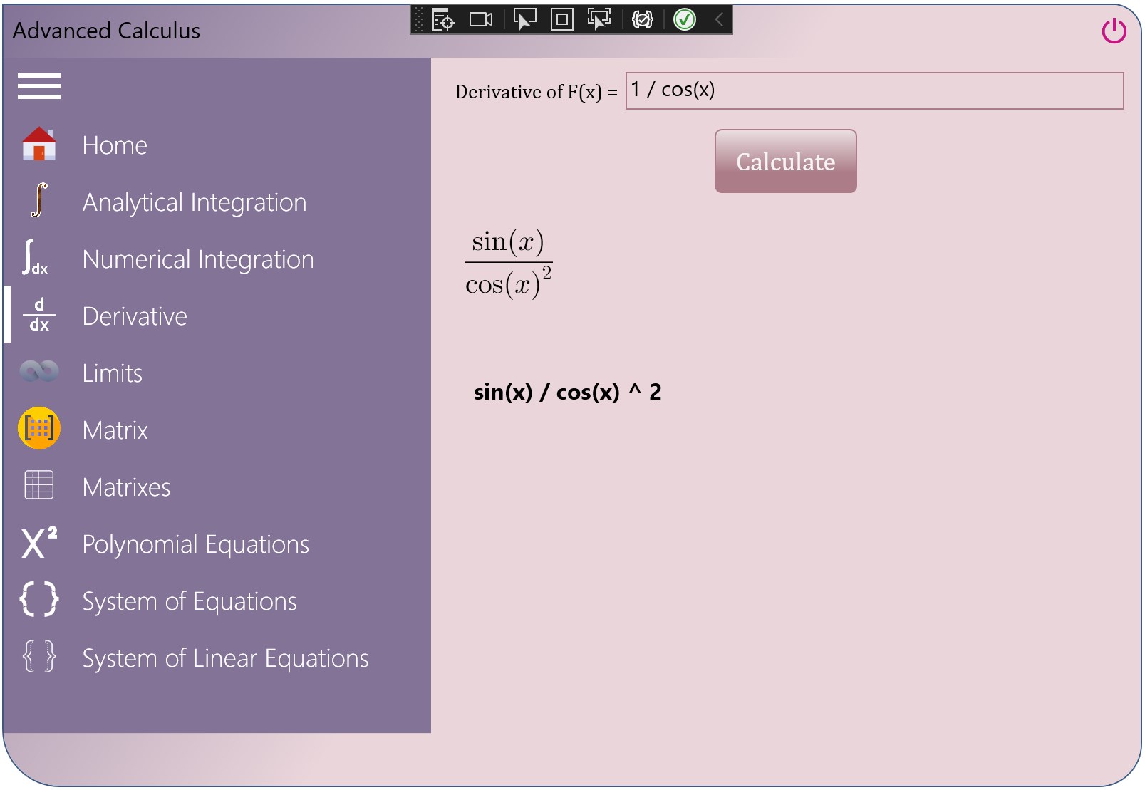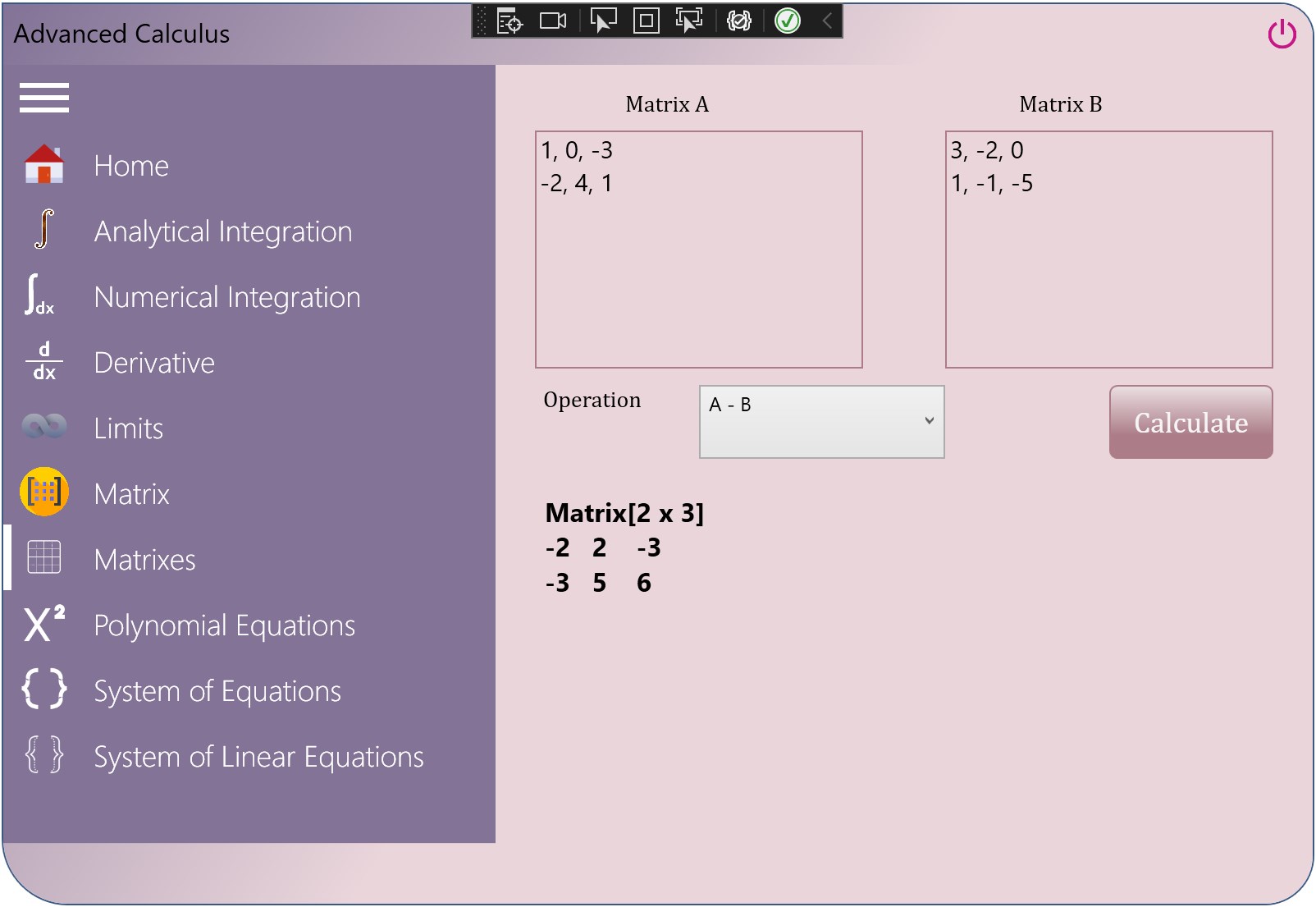 IntegralLimitDerivativeMatrixPolynomialEquationsSystem of Equations