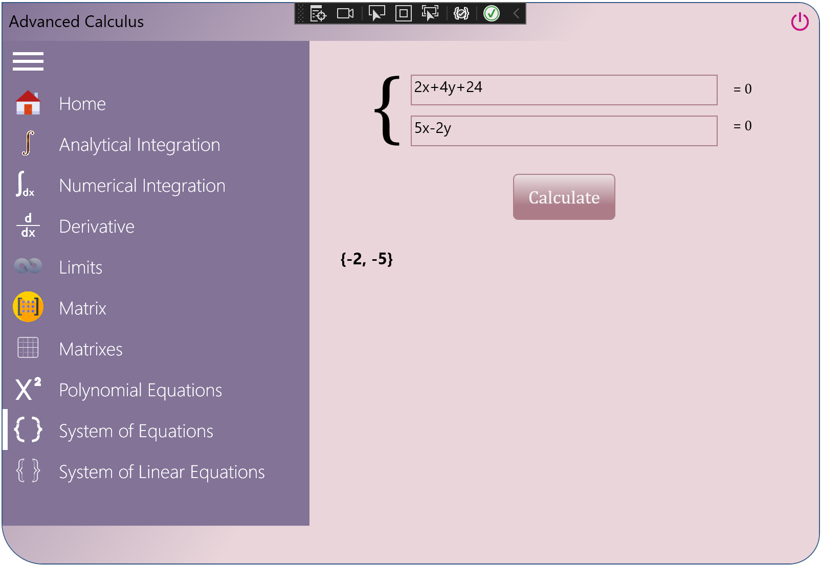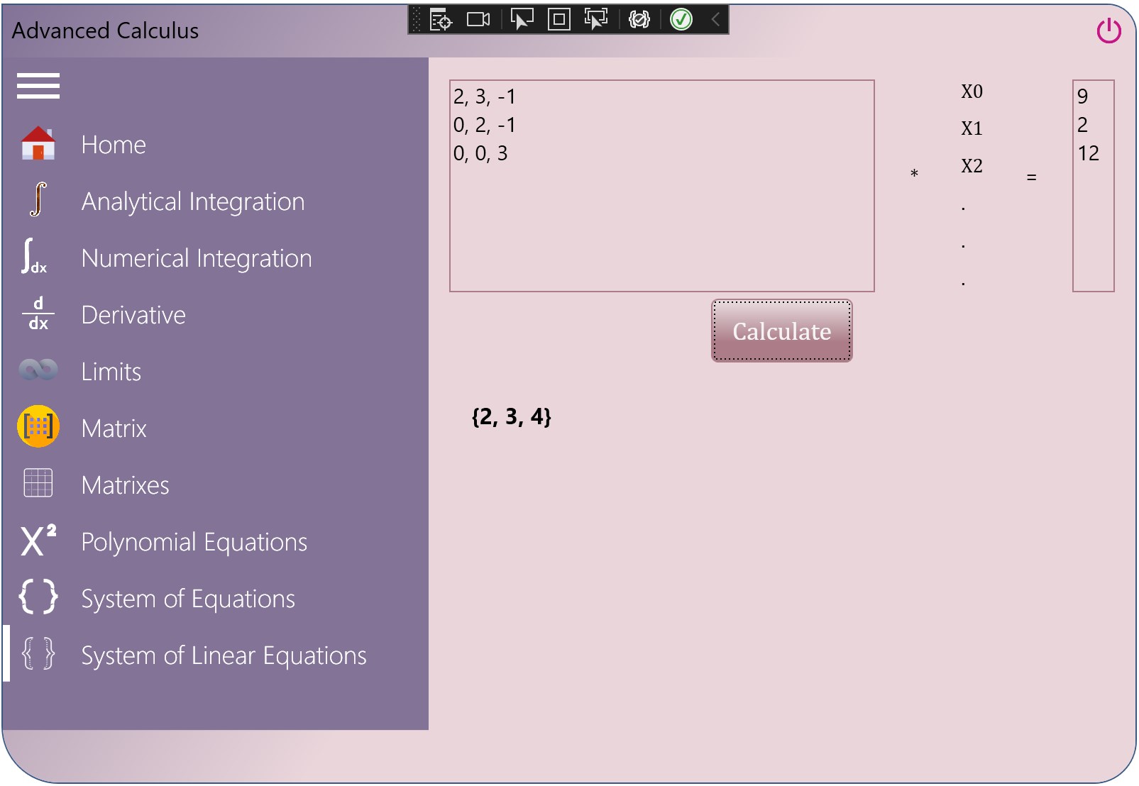 ⦿ System of linear Equations (up to 10 rows)