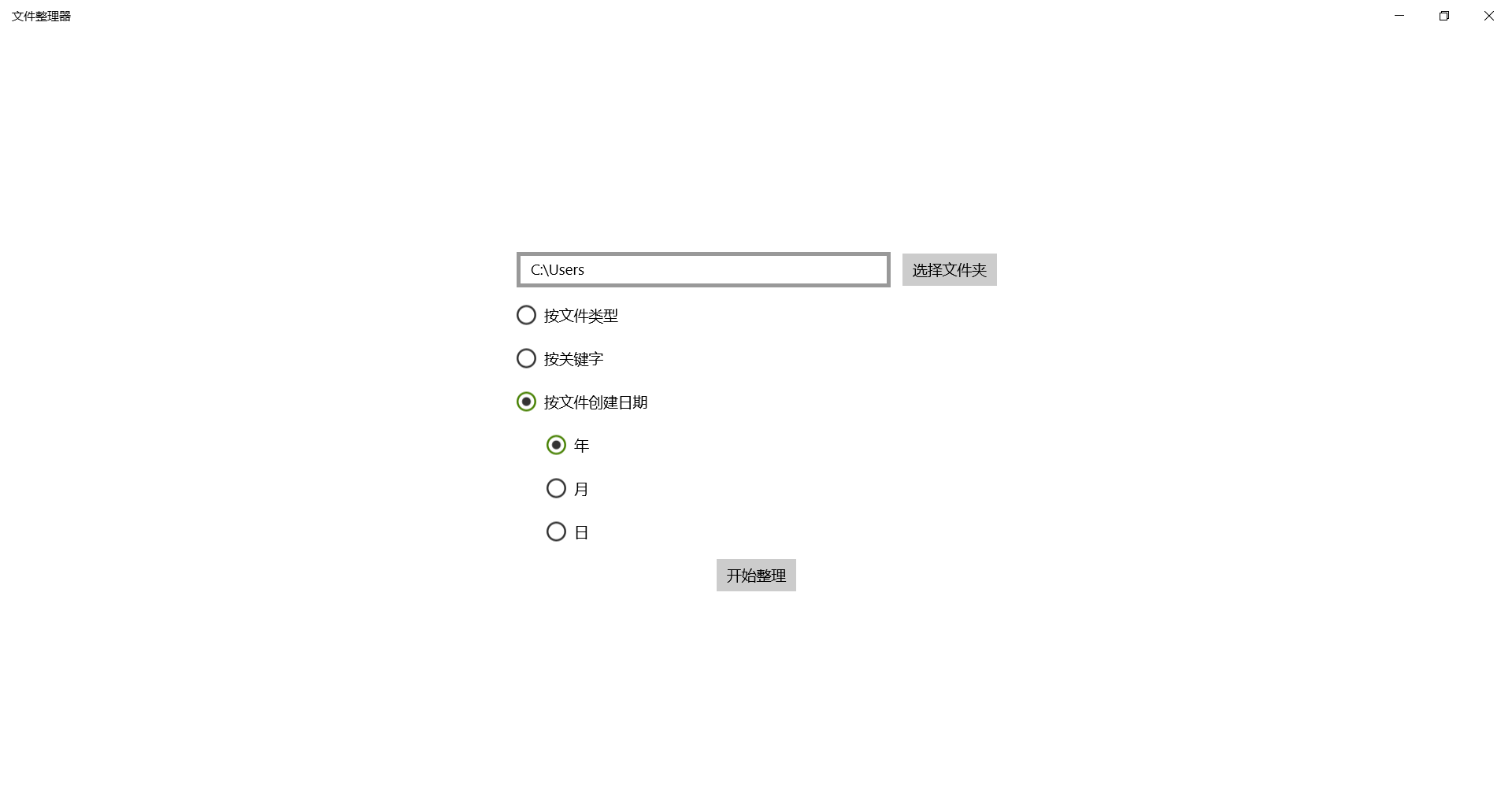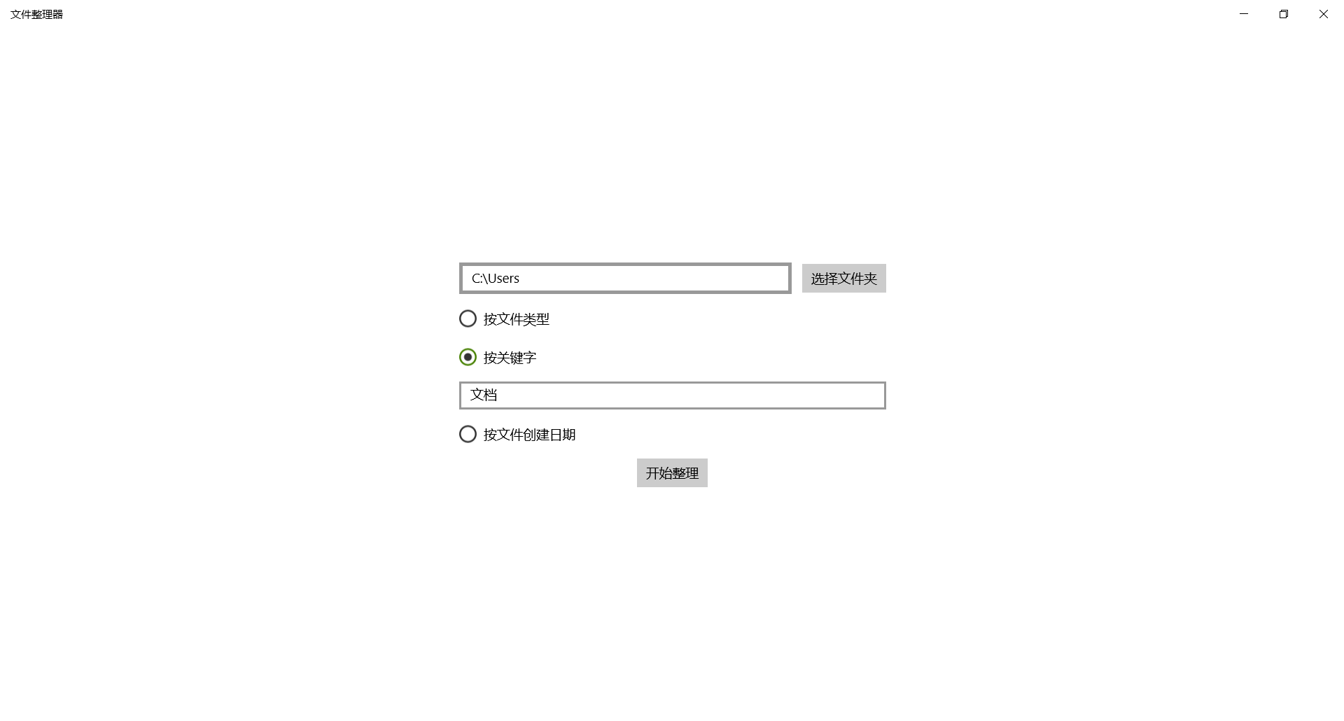 Select a folder, the application will organize the files according to your preferences, you can sort according to the type of the file, the keyword in the file name or the date the file was created.