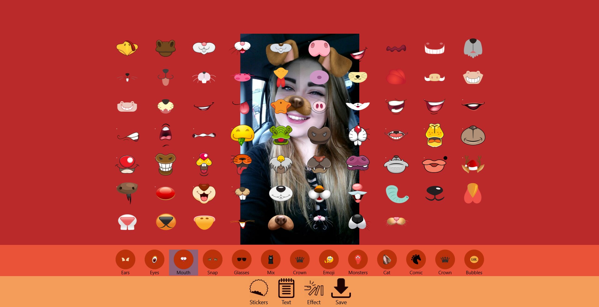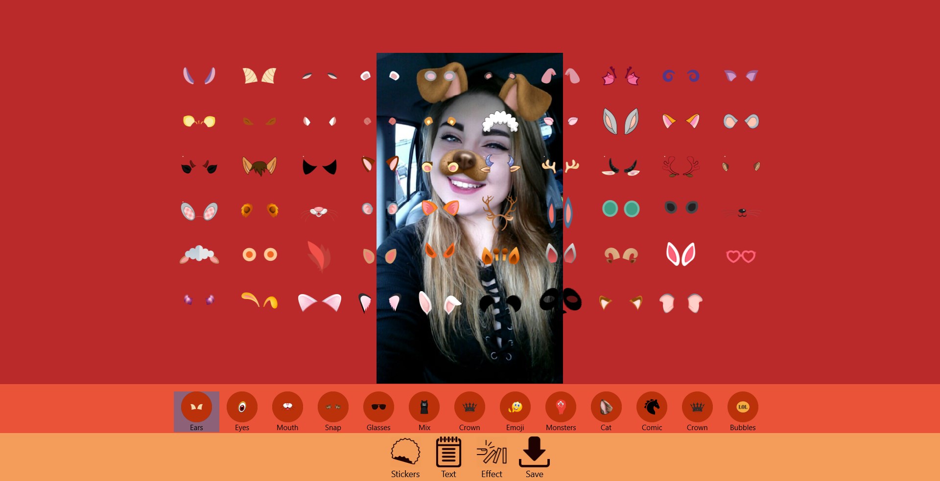 Create a great selfie by adding snap filters like doggy face, cat face, rabbit face, rainbow filter, anime eyes, mouth,ears,monster,Bubbles, Glasses,emoji, tears, snap text and more