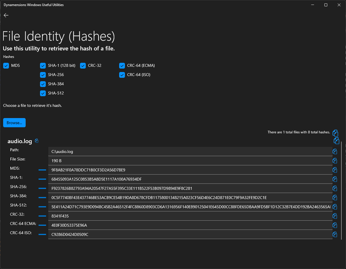 - Added ability to copy entire file hashing information.