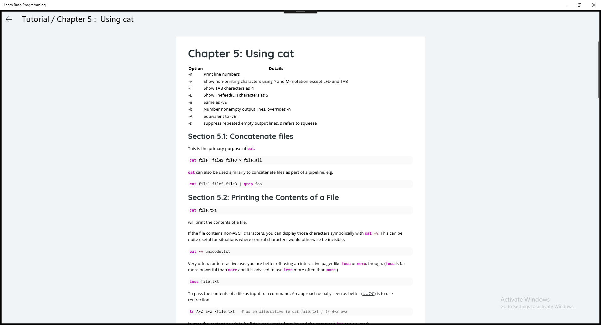 Chapter 5 : Using cat