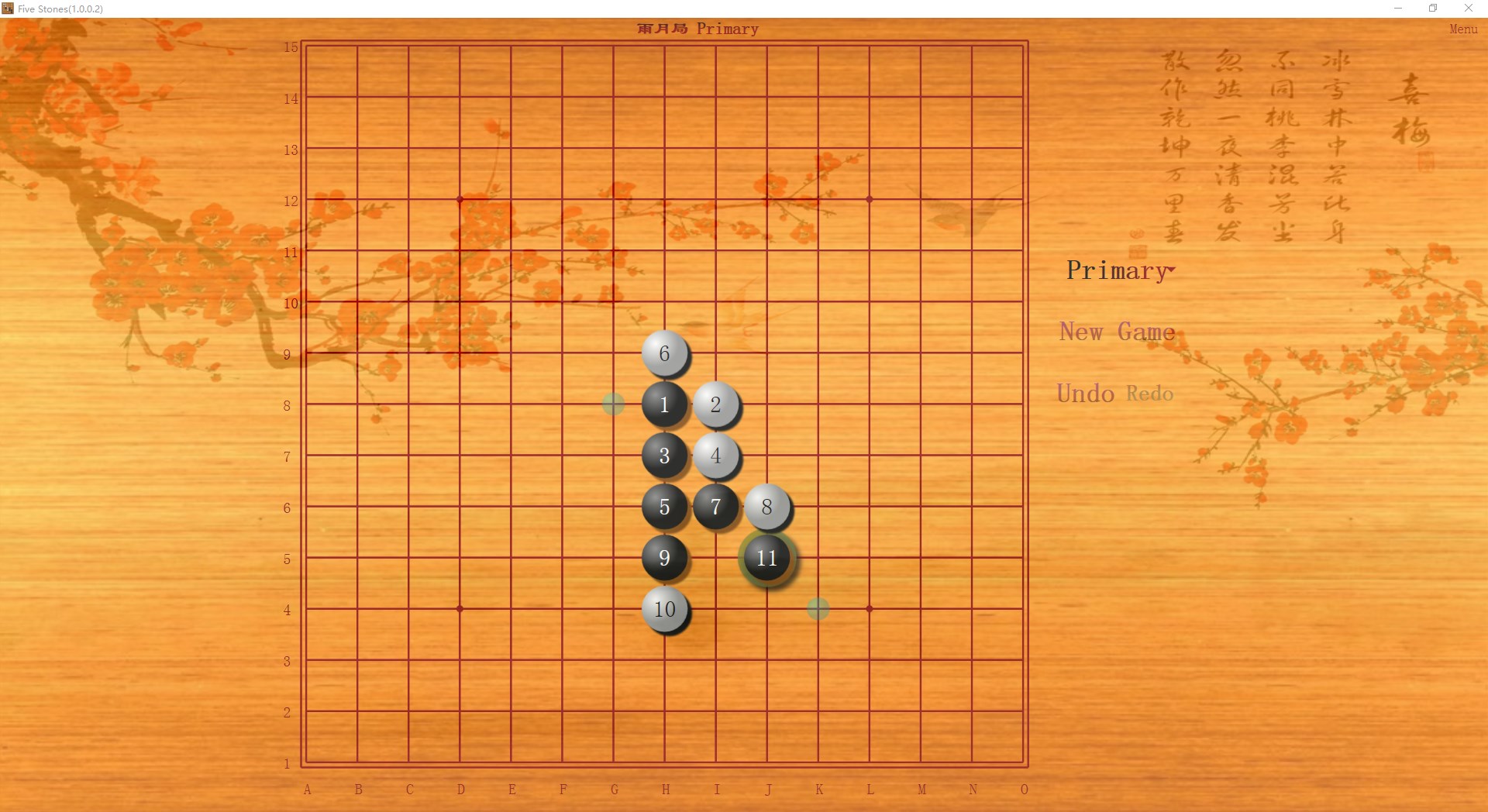 Gomoku, also called Gobang or Five in a Row, is an abstract strategy board game. It is traditionally played with Go pieces (black and white stones) on a Go board, using 15×15 of the 19×19 grid intersections.[1] Because pieces are not moved or removed from the board, Gomoku may also be played as a paper and pencil game. The game is known in several countries under different names.