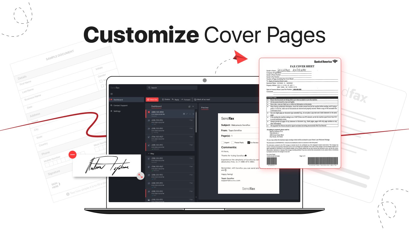 ● Professional, customizable cover page template In App - Customizable templates to send fax. Add your company logo on the cover page, scan & fax on the go!