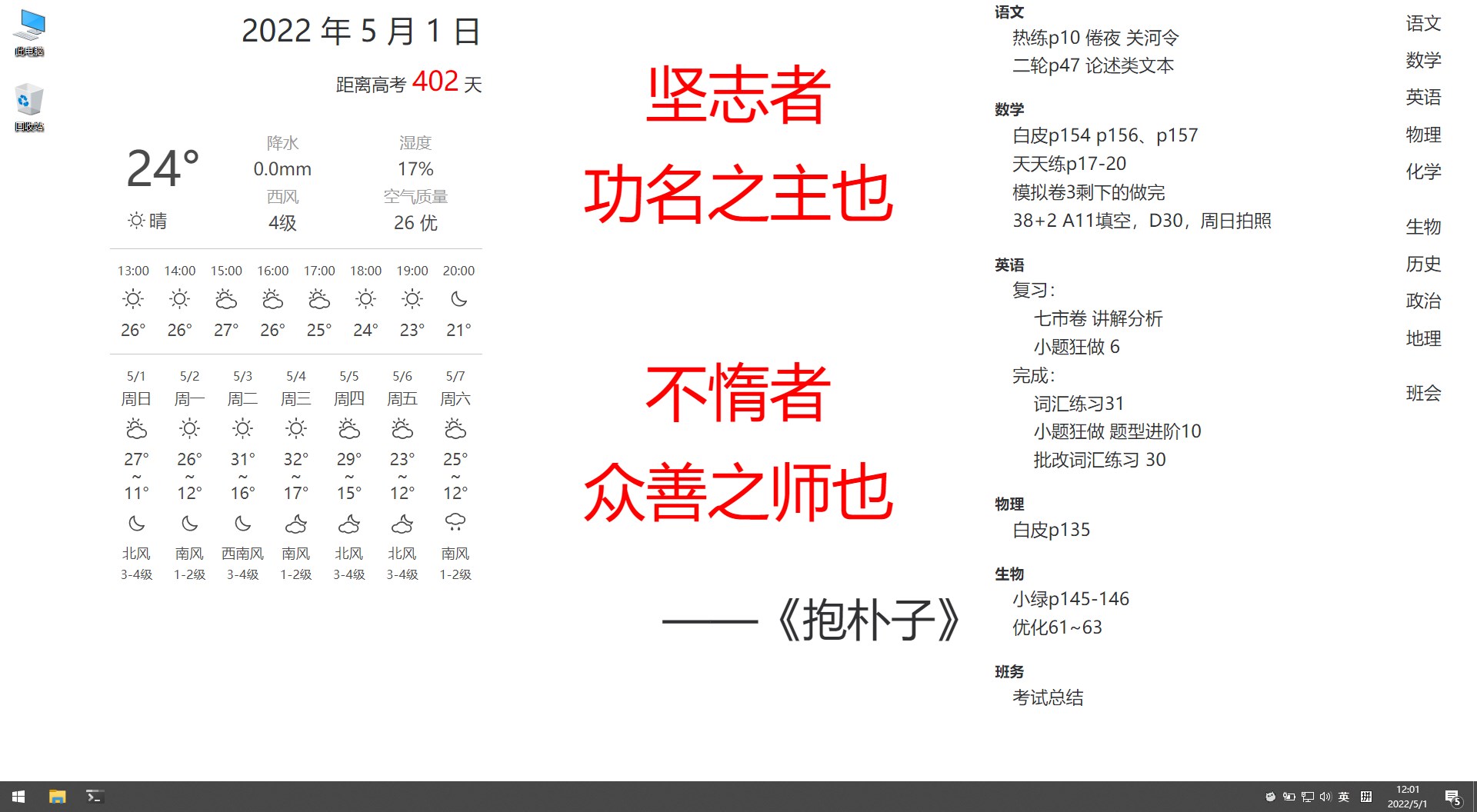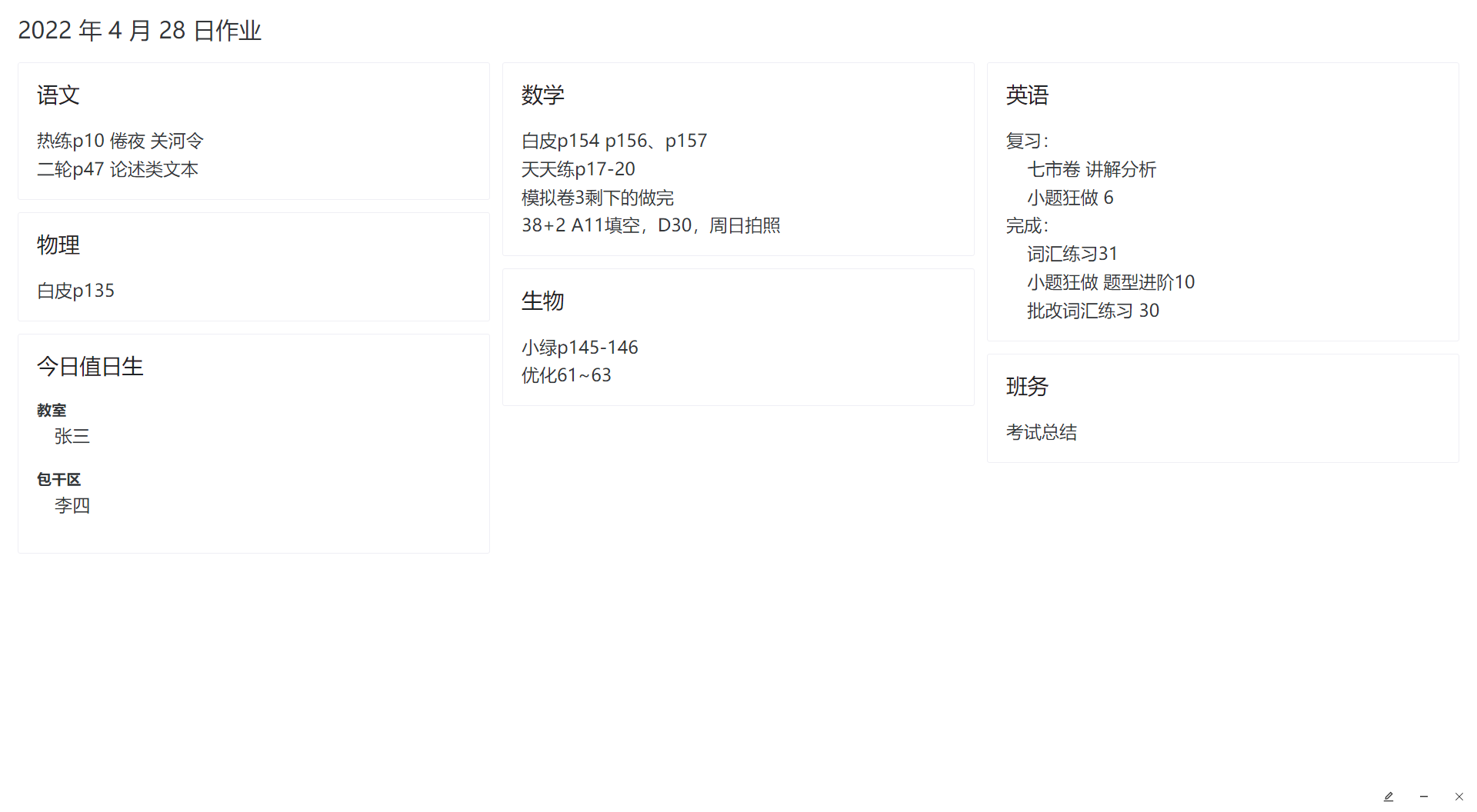 这是一个用在班级电脑上面的教室系统,以动态壁纸方式呈现高考倒计时、作业、课程表、值日生等看板,并提供简单易用的设置界面。