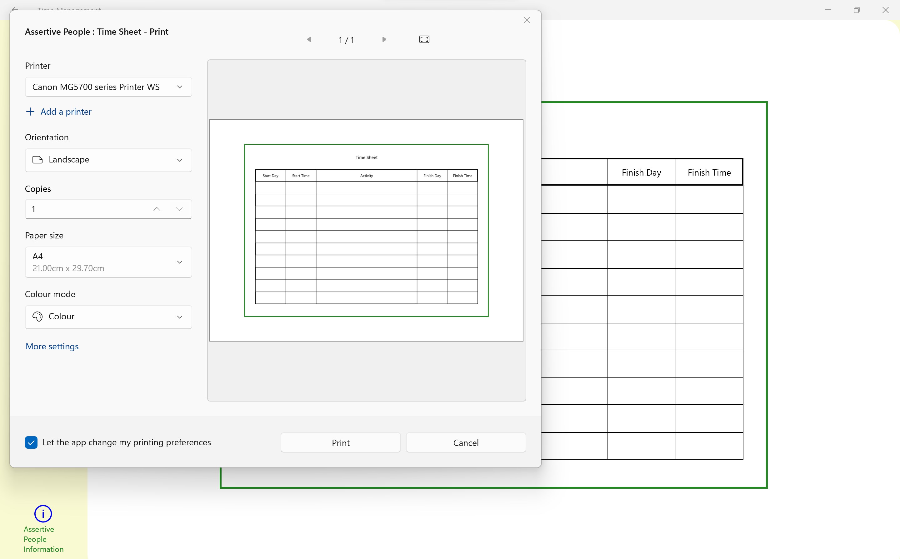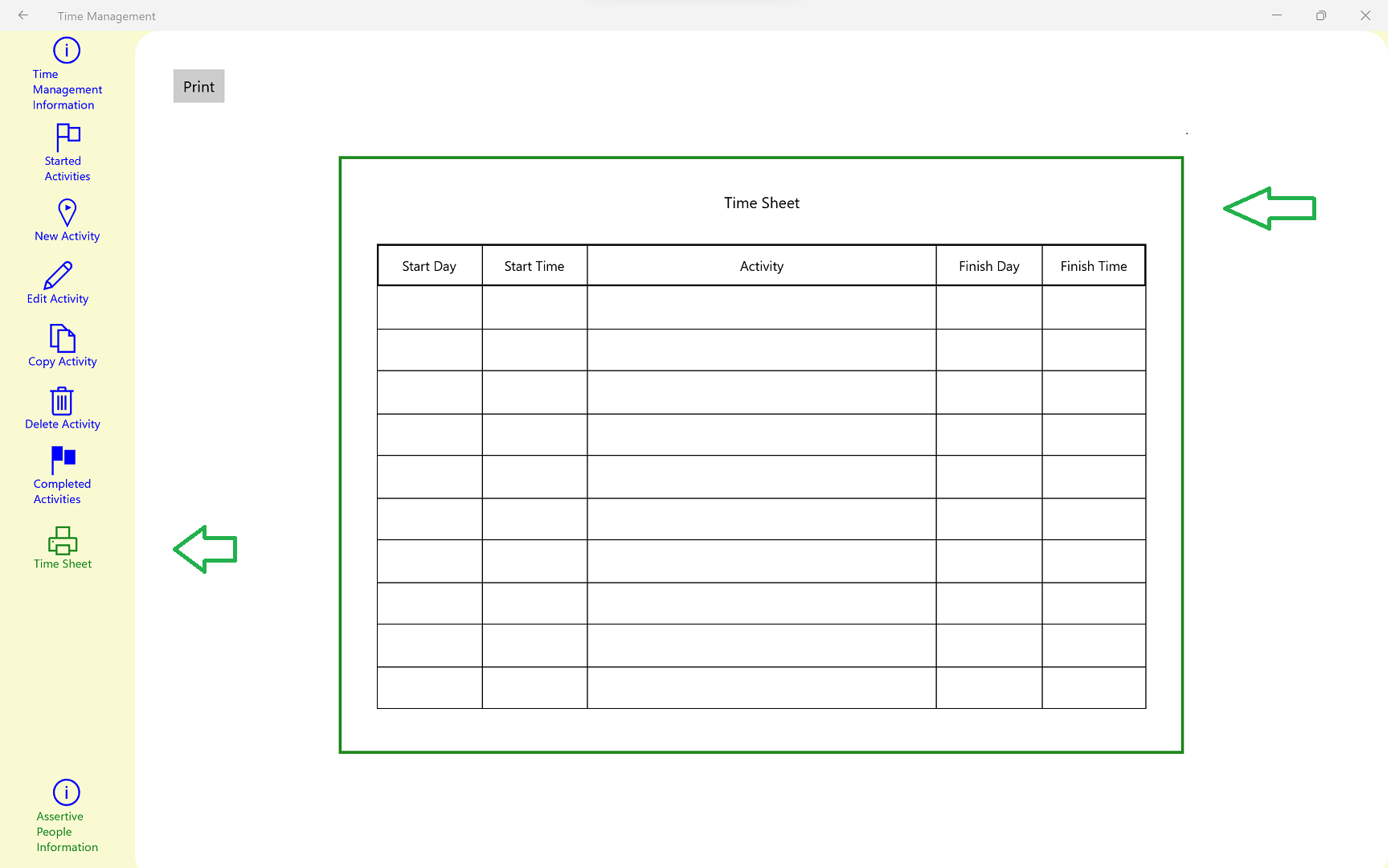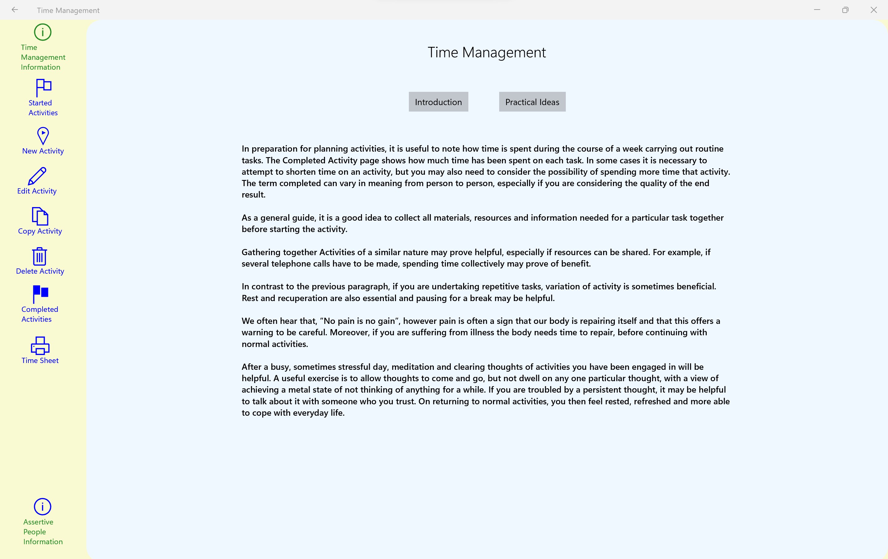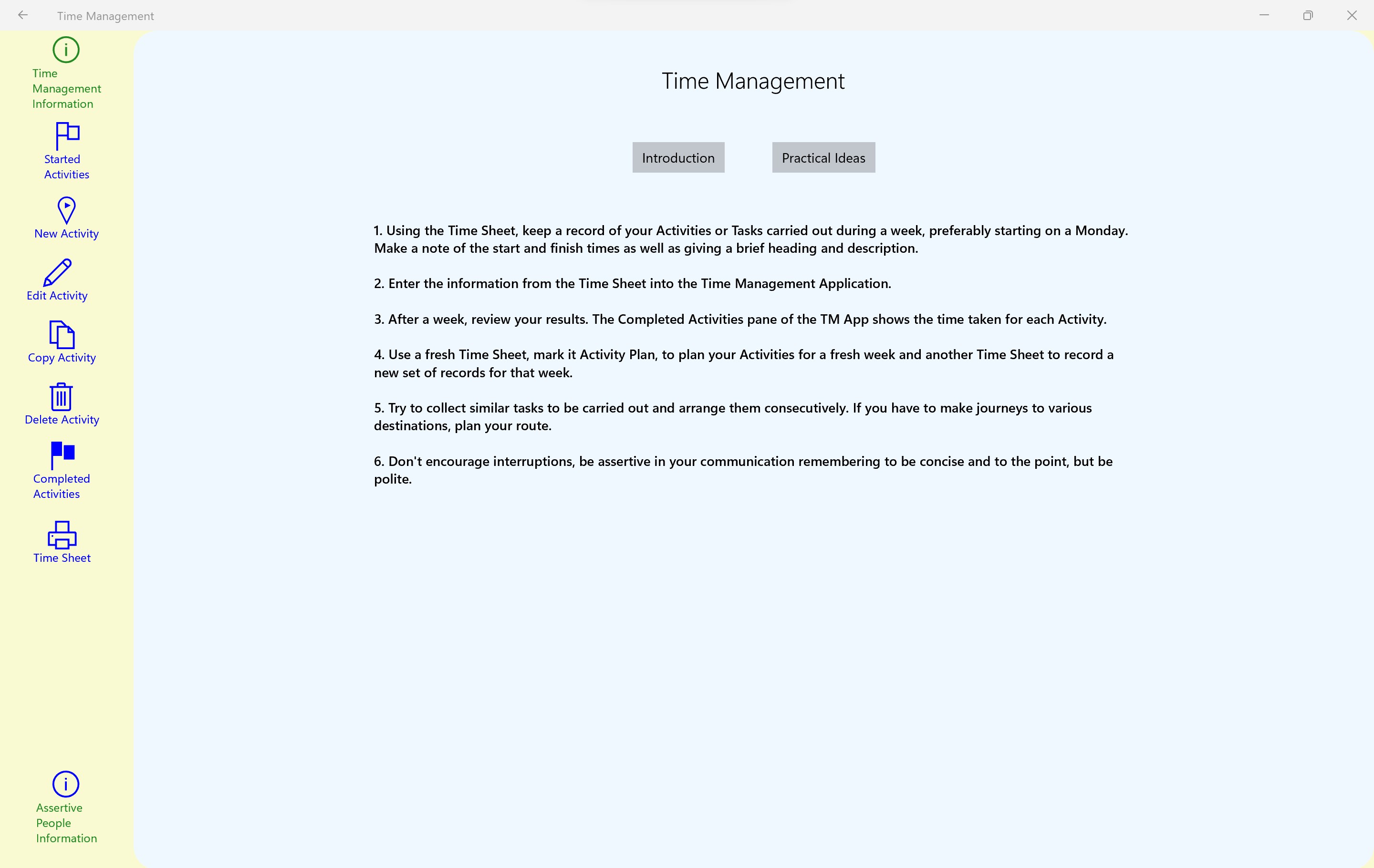 An information page is enclosed to give basic advise on the Time Management app and its use.