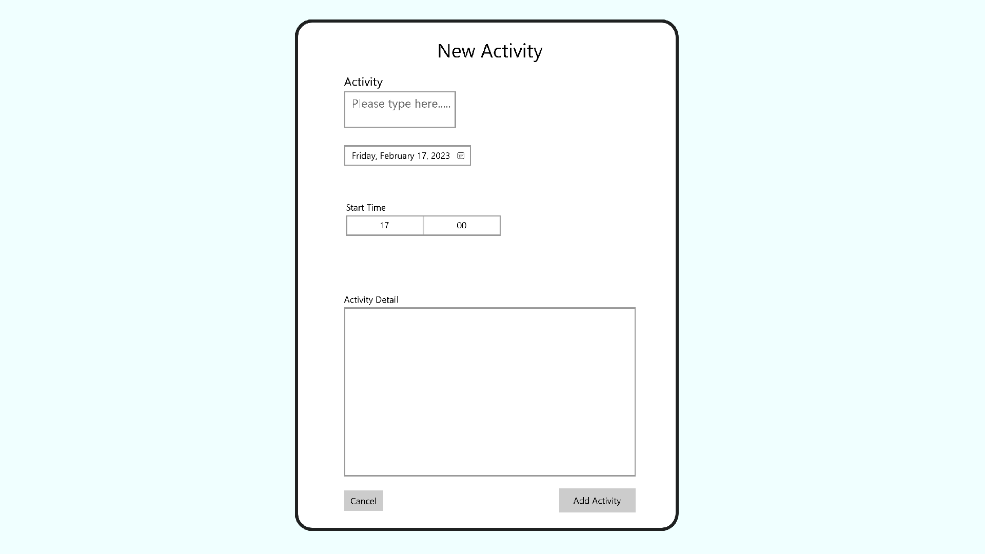 Both the New and Completed Activity pages make use of current time settings, which can be activated by submitting the page without making alterations if you wish.