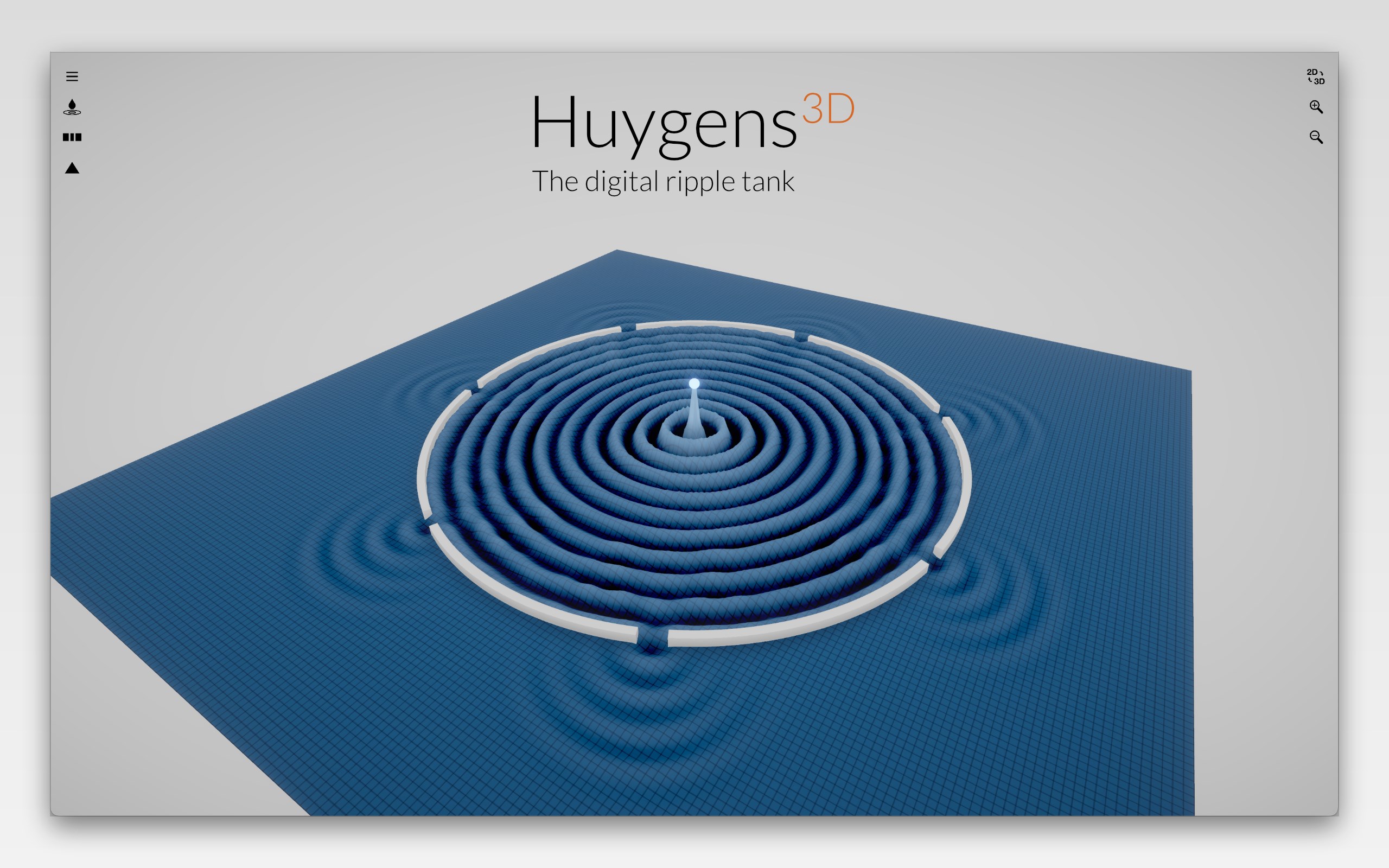Huygens3D brings the classic ripple tank into the digital age, so that every student can discover the behaviour of waves directly on the PC.