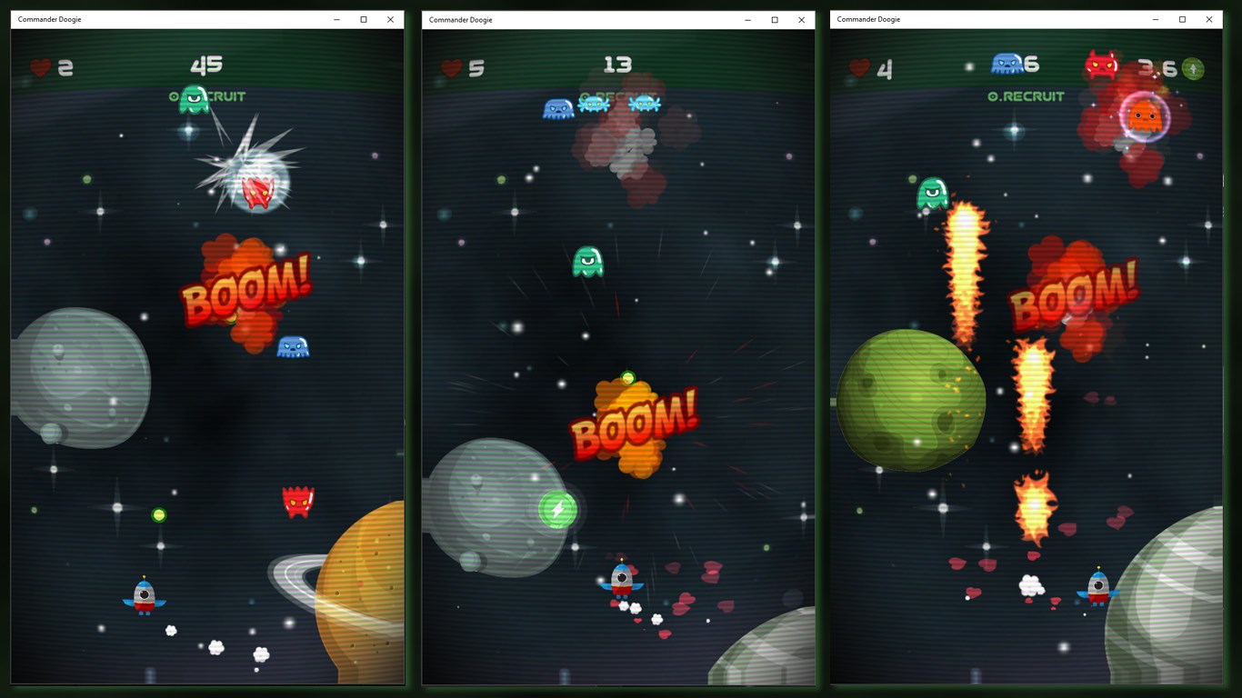 Classic: A classic arcade space shooter, waves of enemies and bosses to shoot through!Power-ups: Pick up extra powers to dish out superior damage!Ranking: As you get better, so does your ranking. See if you can become a Commander!Talents: unlock skills to better defeat your foes as you rank up!Enemies: Shoot your way through multiple levels with a variety of enemies with different abilities that will dodge and rush you!