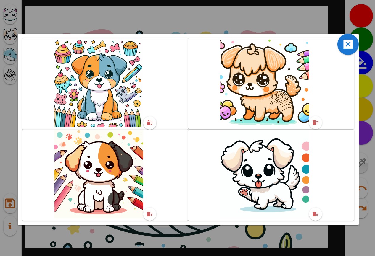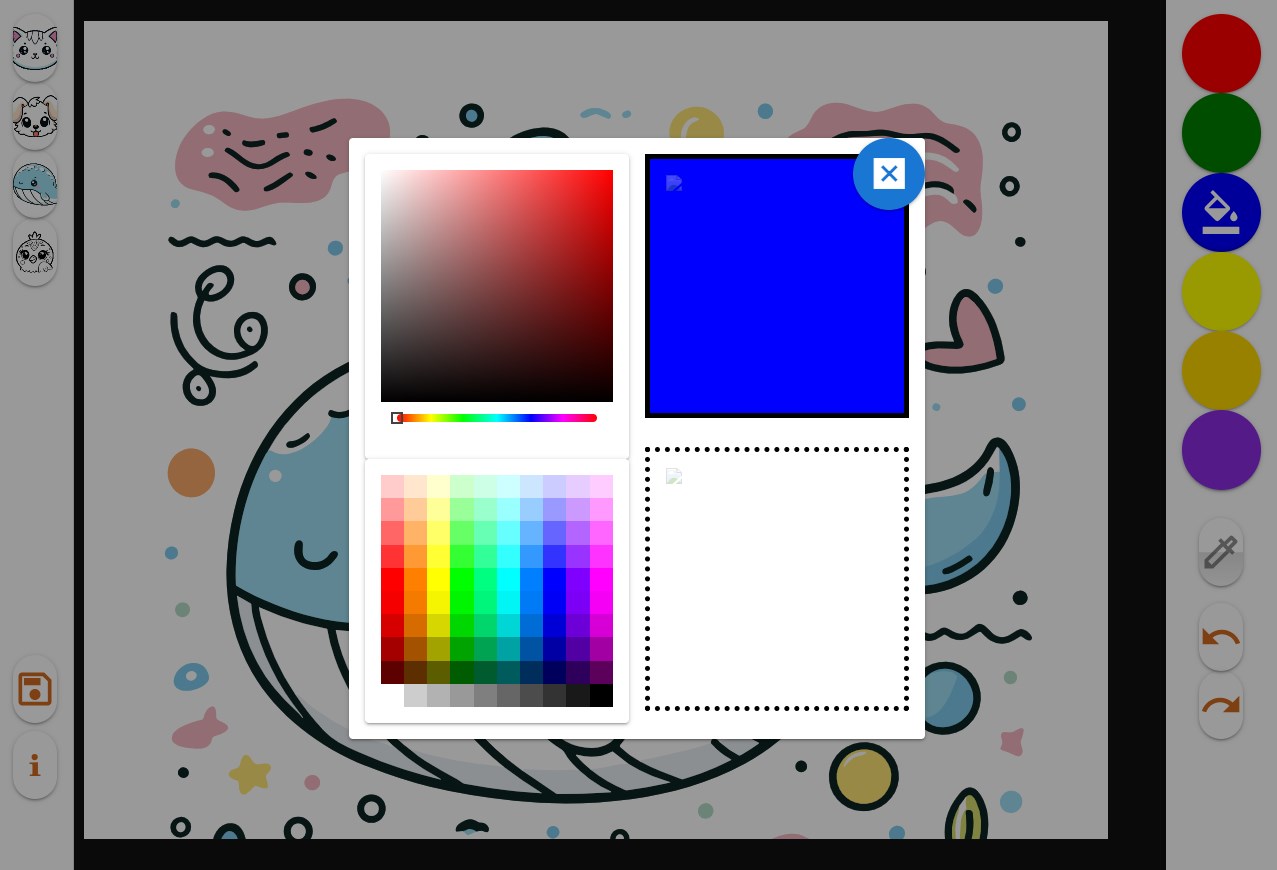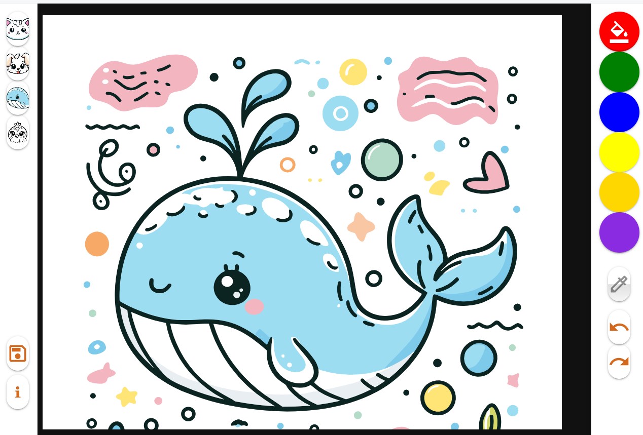 Coloring BookDog illustrationsCat illustrationsBird illustrationsWhale illustrationsColor chooserSVG imagesSave and Load colored pages