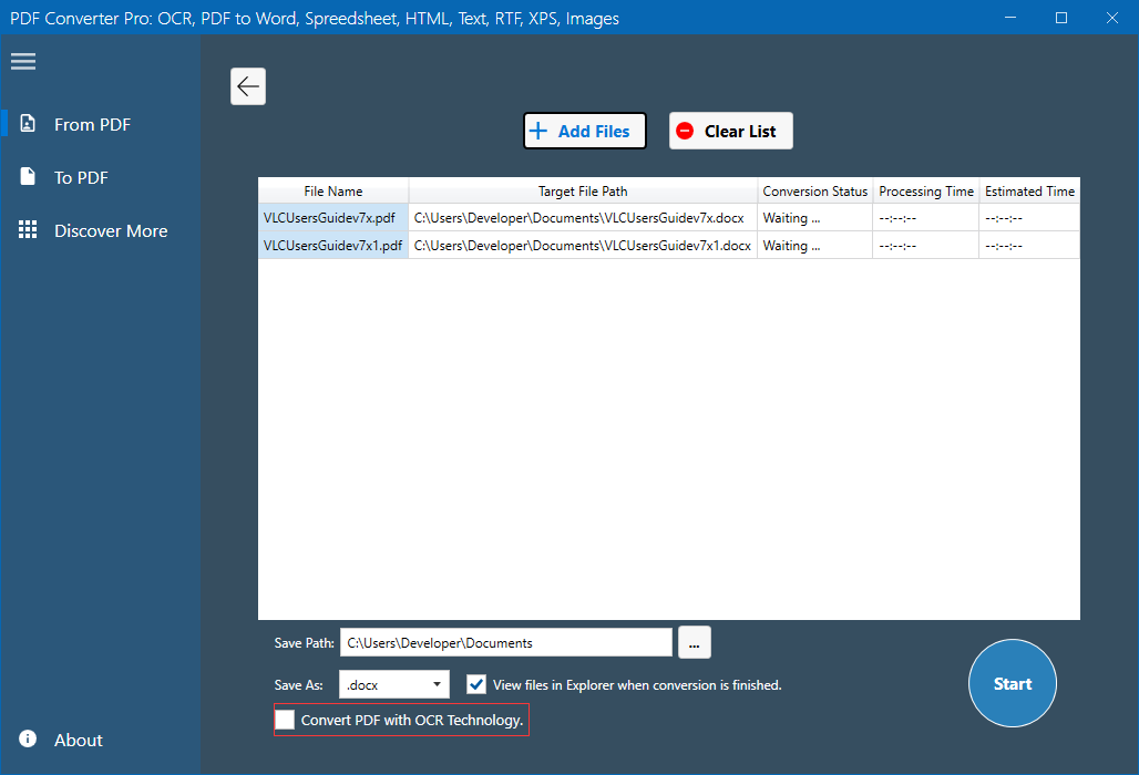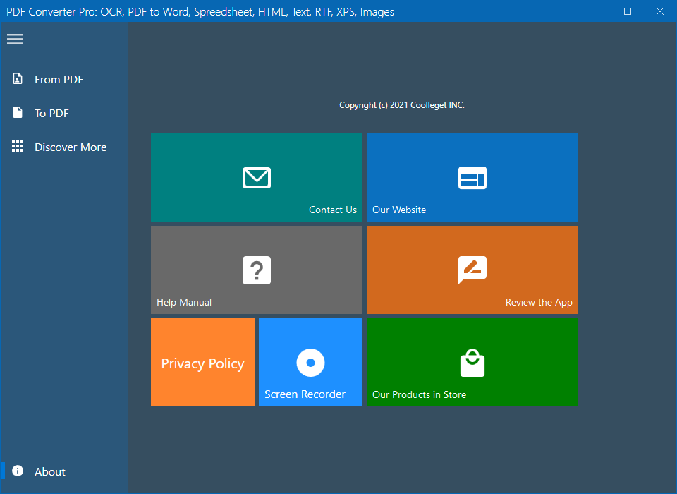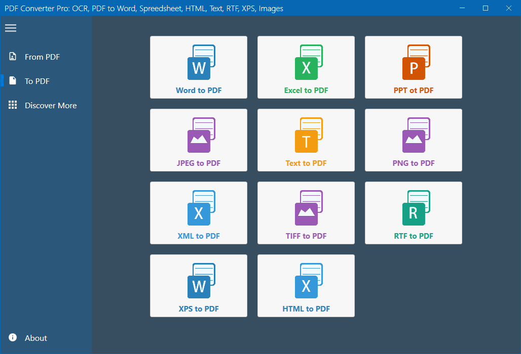 It has the ability to convert PDF to files. PDF to DOCX, PDF to DOC, PDF to XLSX, PDF to TXT, PDF to HTML, PDF to XPS, PDF to RTF