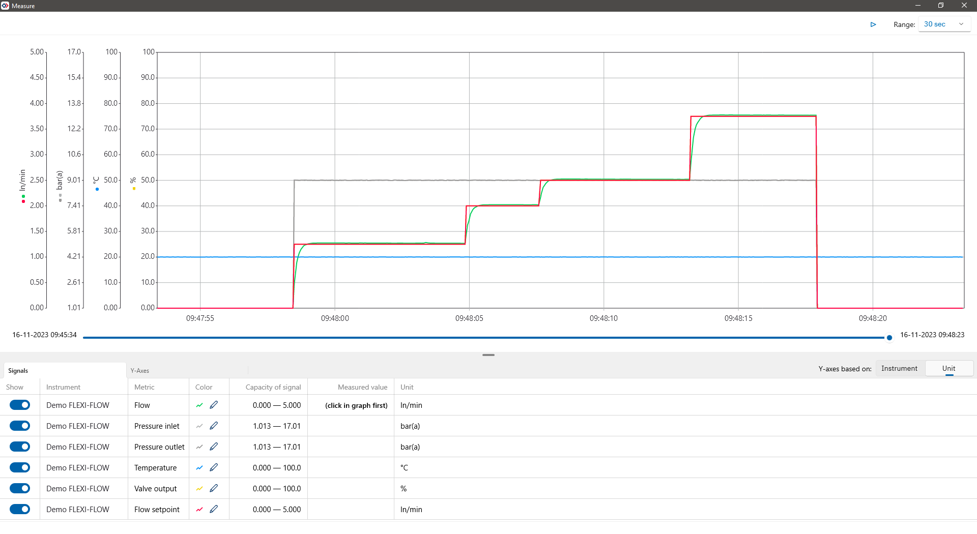 Bronkhorst FlowSuite is not intended to control critical processes, but it can be used to control and monitor research and pilot setups. For critical processes, it is recommended to use a dedicated process controller such as a PLC.