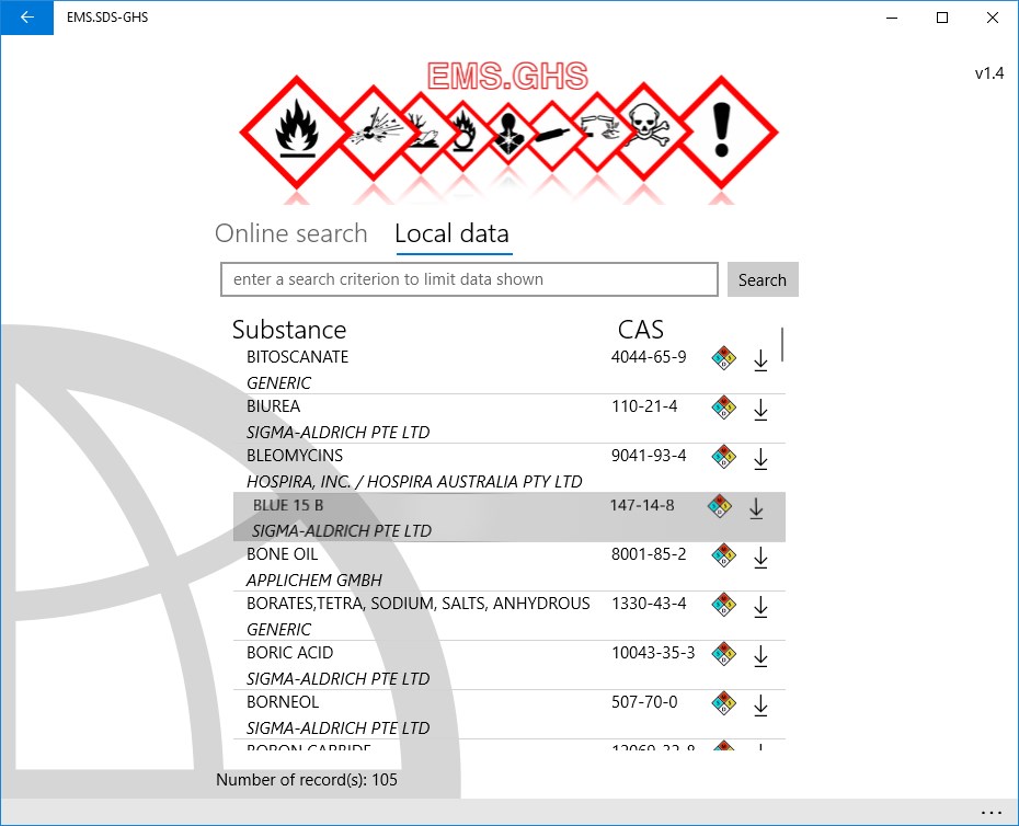 EMS.GHS-SDS is a leading chemical safety software application that is being used to support the requirements of the Globally Harmonized System for the Labeling and Classification of Chemicals (GHS). It helps you find and display GHS compliant chemical labels and Safety Data Sheets for safety and regulatory compliance, even when you're in the field or on-the-go.