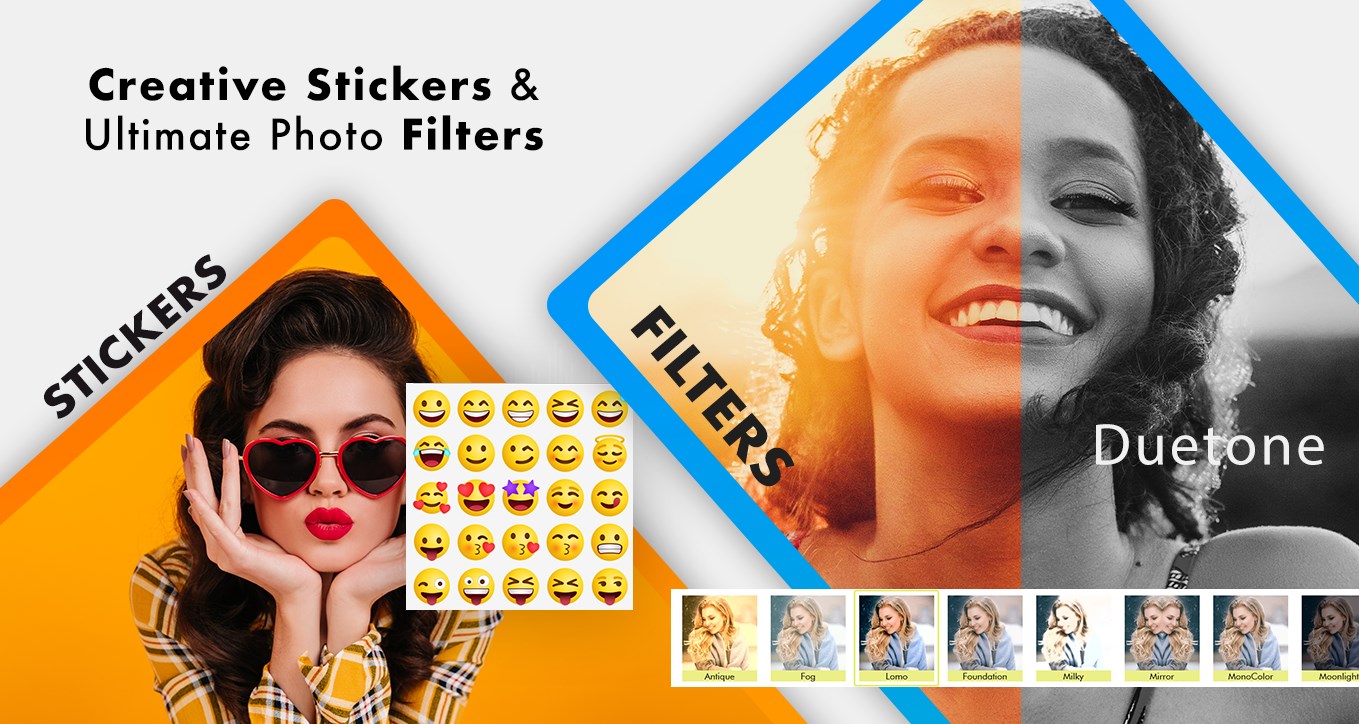 Photo Video Maker lets you create best slideshow ever. It includes video frames, stickers, texts, and background music.