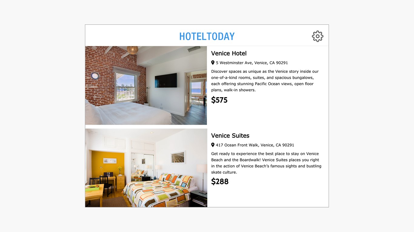 Hotel Today is all about booking your favorite hotel for the day. Great rooms, pools, cabanas, gyms and new experiences. Have an important meeting? Check in at 9am and get ready for your meeting and enjoy the whole hotel for the day till 5pm. Stay longer if you want. In today's active world we all need the opportunity to work and play and our favorite hotels during our busy daily lives. Book on Hotel Today and discover all the best hotels and the best prices all available today. Check in at 9am / Check out at 5pm.
