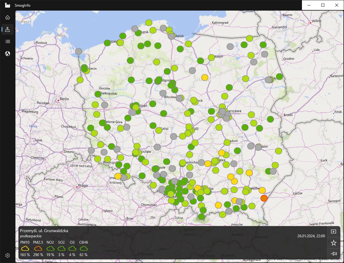 Dzięki aplikacji SmogInfo na urządzenia z systemem Windows możesz na bieżąco śledzić stopień zanieczyszczenia powietrza: