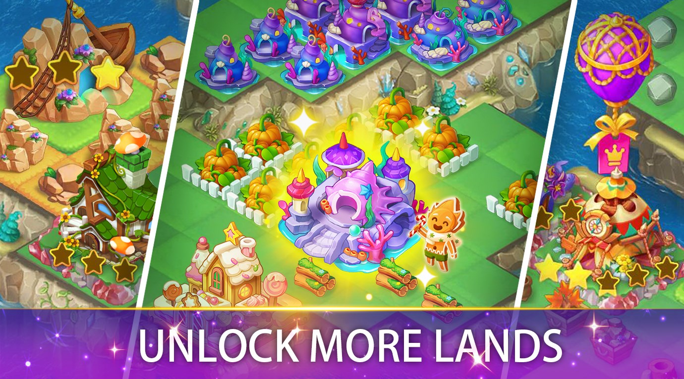 Match and merge thousands of different pieces and meet charming fairytale characters! Each new character helps you get closer to building the island of your dreams.