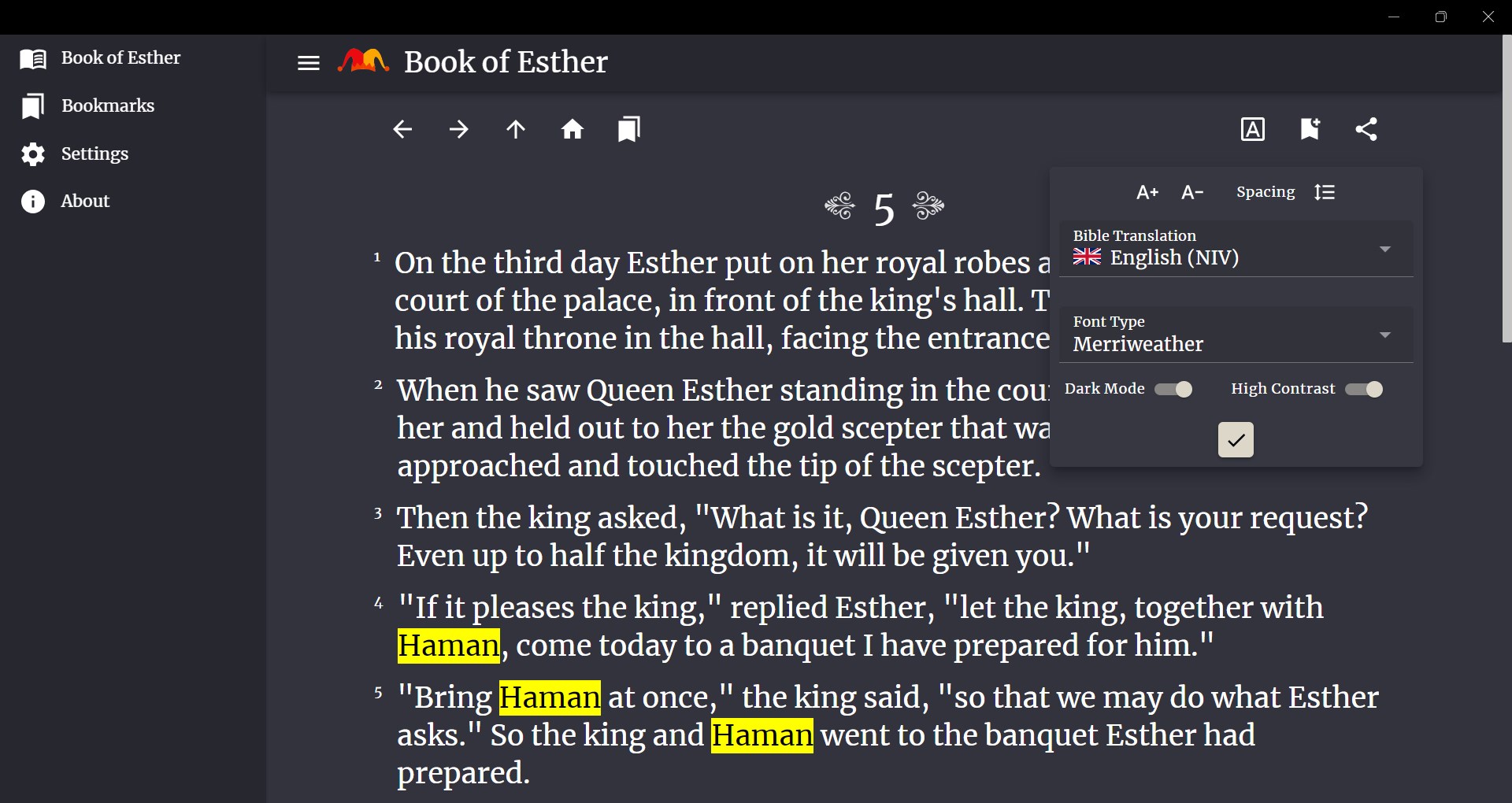 Discover the ultimate Book of Esther. Immerse yourself in the timeless tale with ease and clarity. Our user-friendly interface makes reading a breeze with multi-language support in English, Hebrew, Arabic, Spanish, Italian, Simplified Chinese, French, or Russian. Customize the app's appearance to suit your style and preferences.