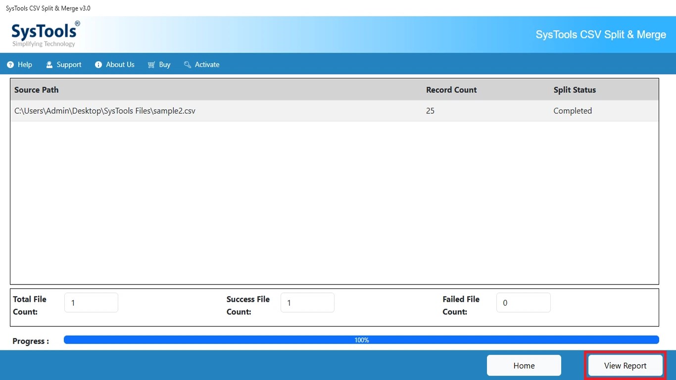 Note: The demo version of the SysTools CSV Split & Merge tool is capable of breaking or combining CSVs up to 25 items. Look for the licensed edition of this software to discover the all features.