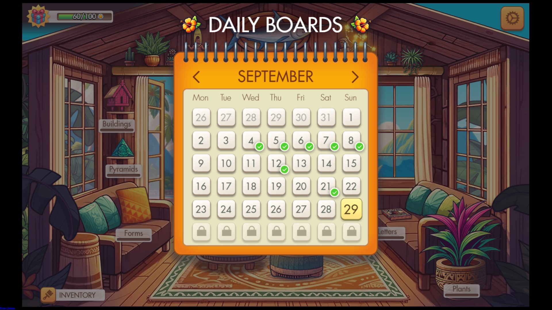 Solving each level leads you to unlocking new levels, game backgrounds, and tile sets. With the built in calendar you will enjoy fresh Mahjong challenges daily, with over 400 levels to explore.