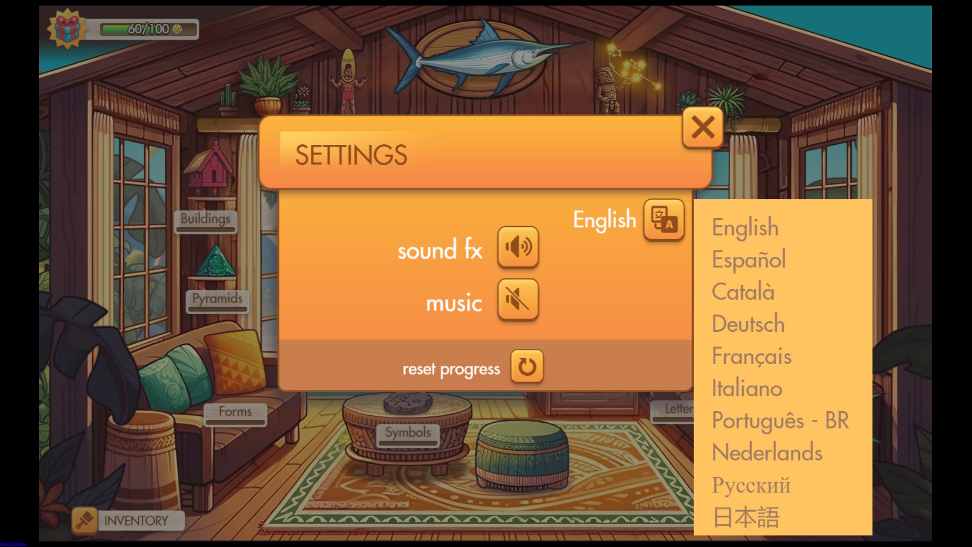 Daily challenges10 Mahjong WorldsCalm music and soundsAutomatic progress saveLevels unlockingBackgrounds unlockingTile sets unlockingHintsHelpInventory