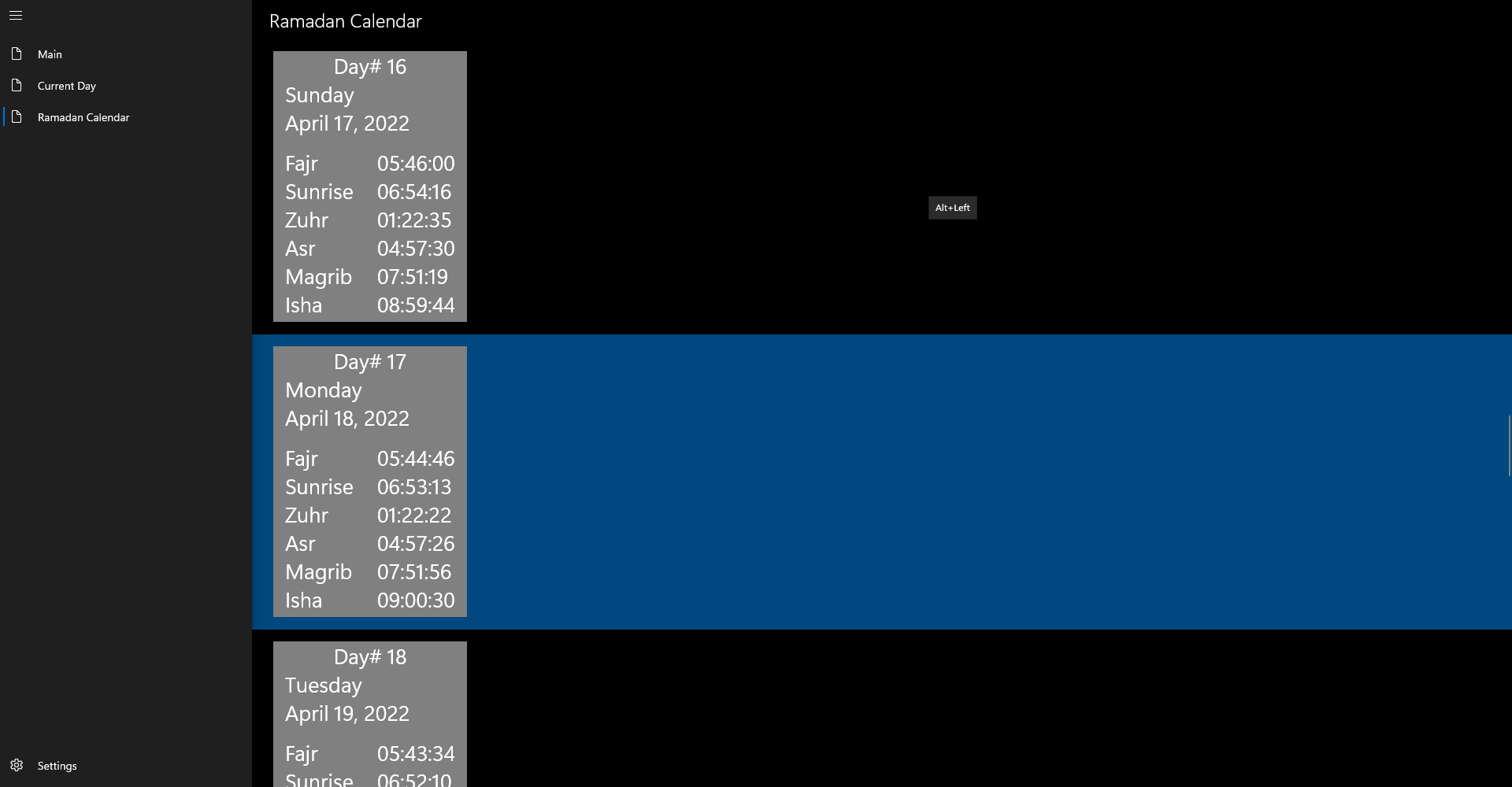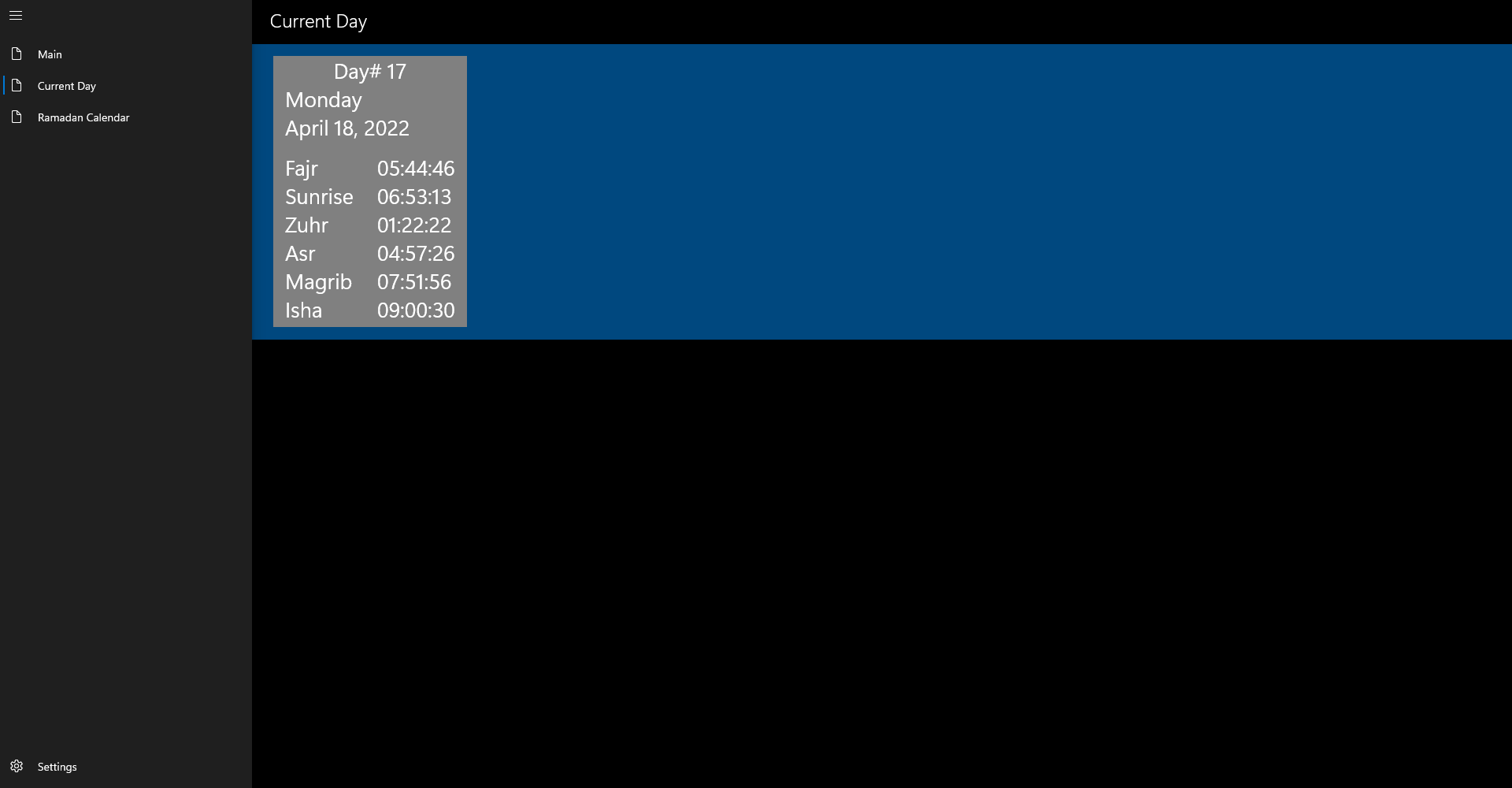 Current Day - Prayer TimingsRamadan CalendarLocation based Ramadan Calendar