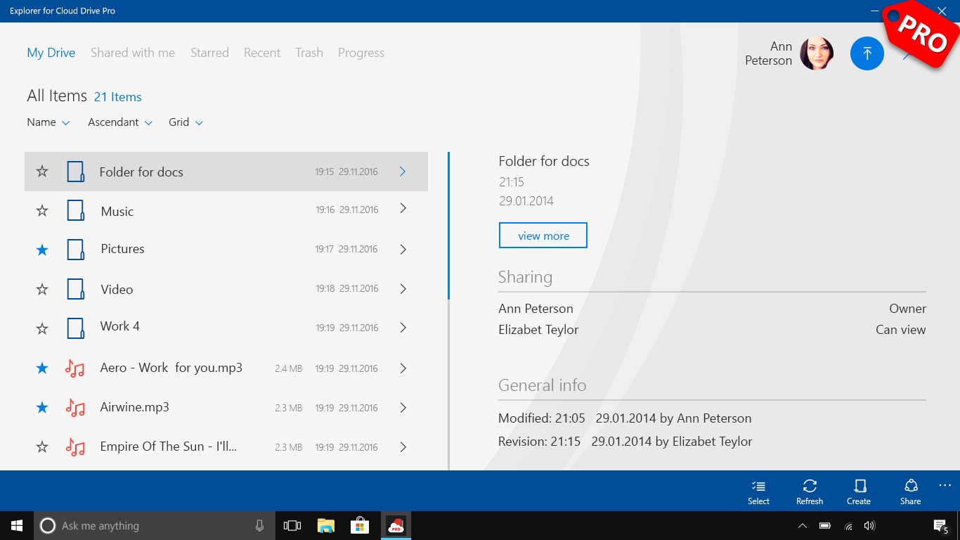 Explorer for Cloud Drive Pro is a great tool for work with your files! Store files on Google Drive and manage them comfortably via the application. This app will help you not only to free up device memory, but also save your files, regardless of what will happen to your device. Start to work with files conveniently right now!