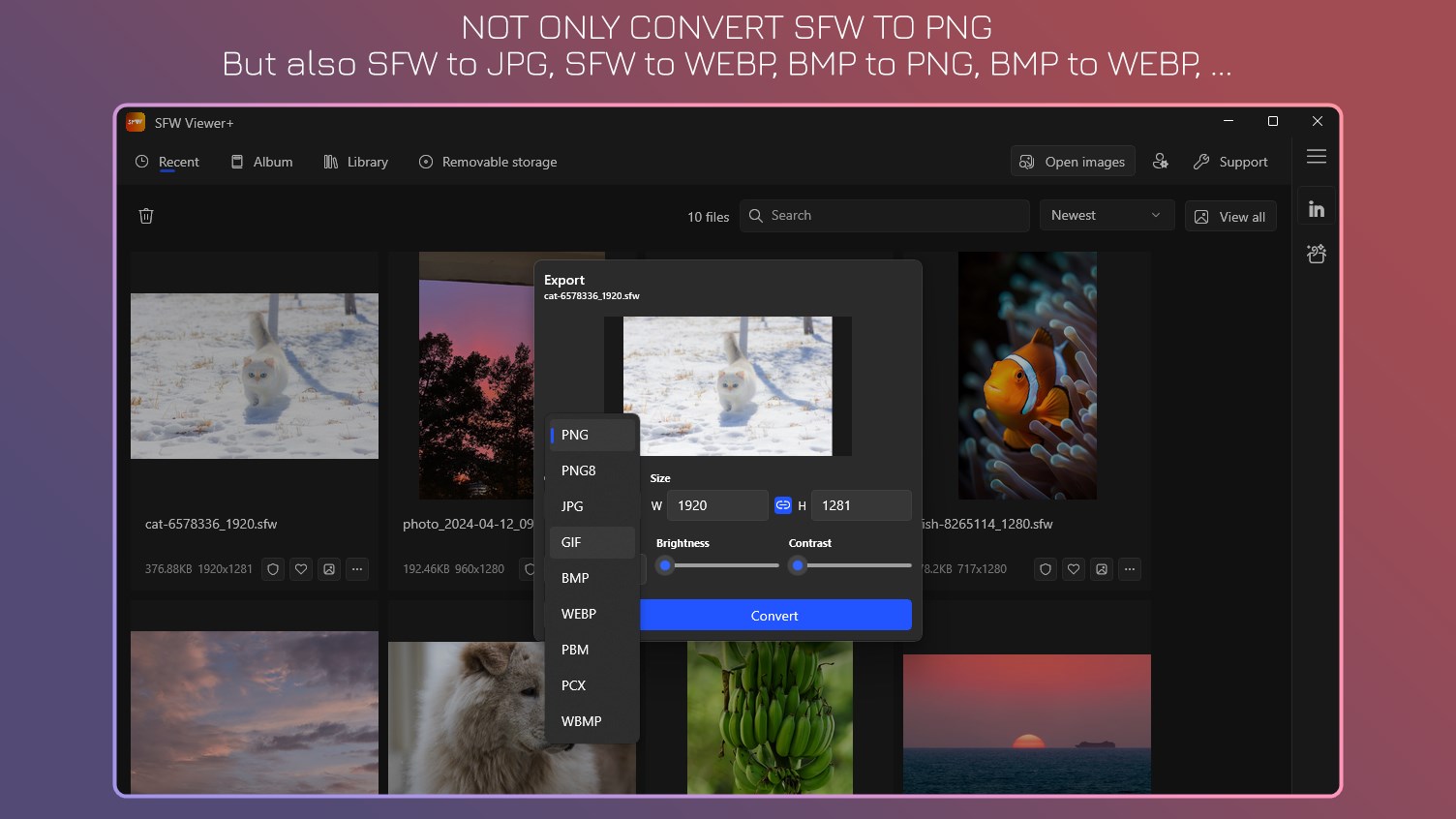 View SFW, PWP and popular image formatsConvert SFW, PWP to JPG, PNG.Convert images to JPG, PNG.