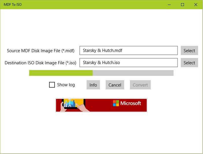 Converts .mdf disk image files to .iso