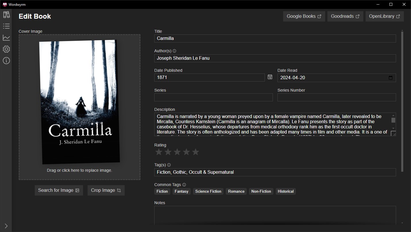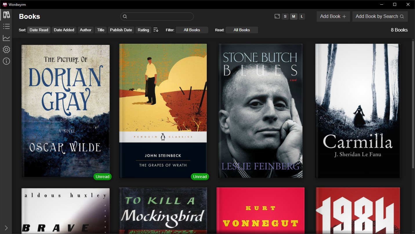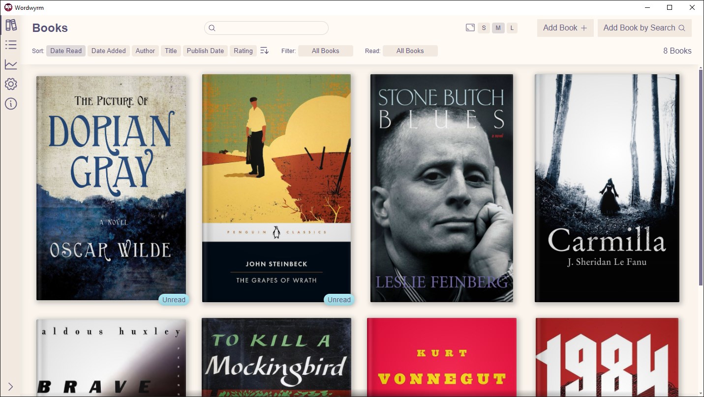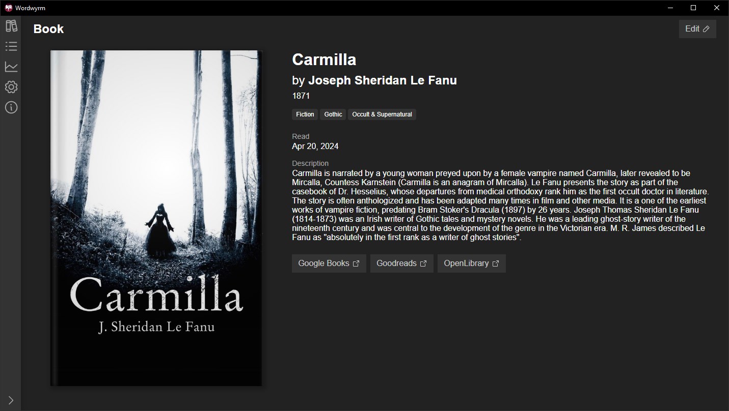 Wordwyrm is a cross-platform desktop app for tracking what books you've read and when. You can add books manually or by searching for them.