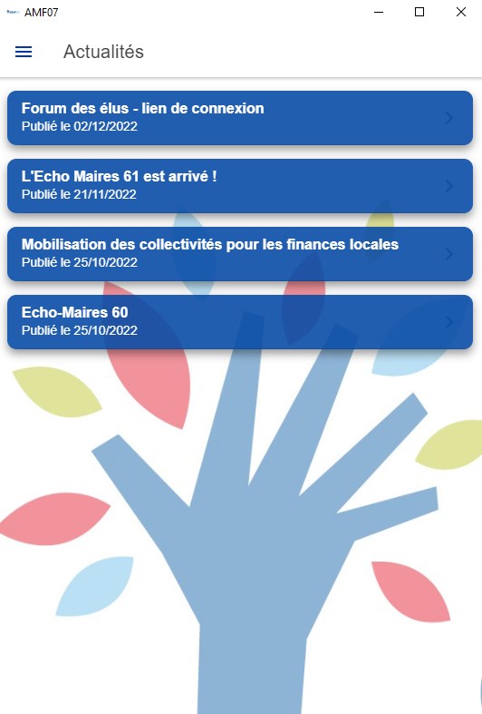 L’application de l’Association des maires et des présidents de communautés de l’Ardèche permet à ses adhérents de recevoir veille juridique, communiqués et actualités diverses, de s’inscrire aux formations et aux manifestations proposées par l’association et de consulter l’annuaire des communes et communautés de l’Ardèche. De nouvelles fonctionnalités seront ajoutées au fil de l’eau.
