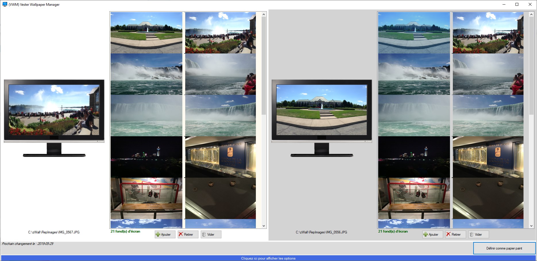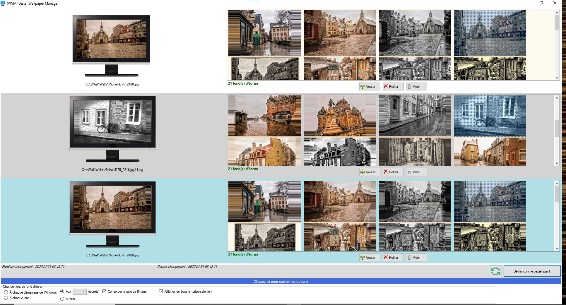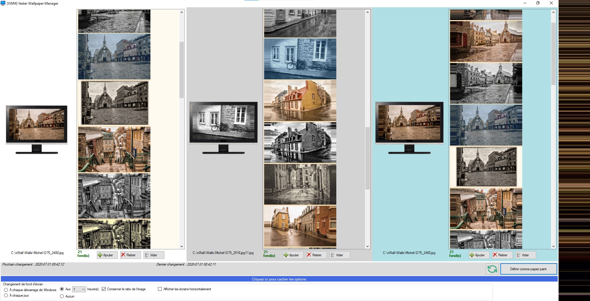 Gérer fond d\'écran WindowsPermet de gérer 3 écransPermet de créer une liste d\'imagesRemplissage d\’images avec un fond déterminé en fonction des images
