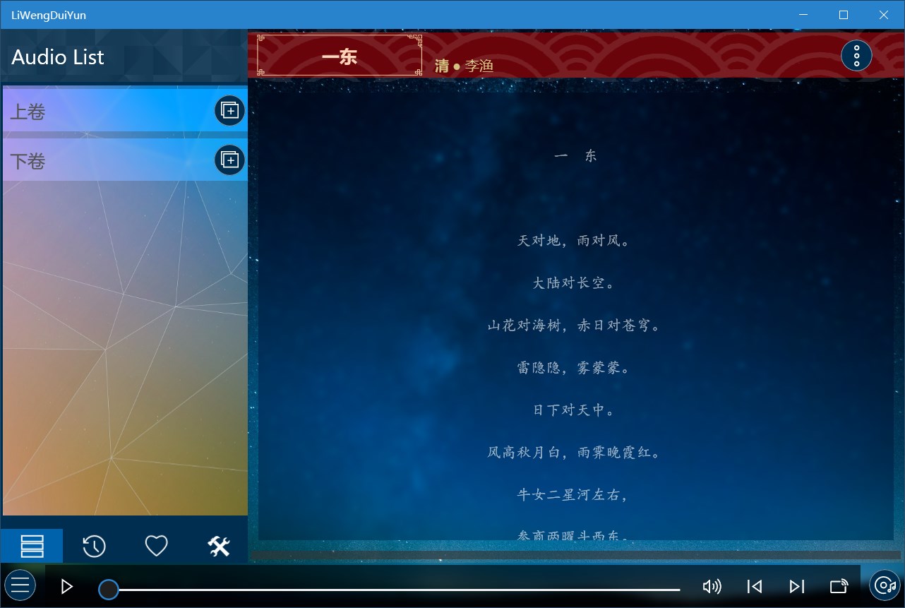 "Li Weng Dui Yun" is the former people learn to write modern poetry, words, used to familiarize themselves with confrontation, rhyme, organizational words of the Enlightenment reading.