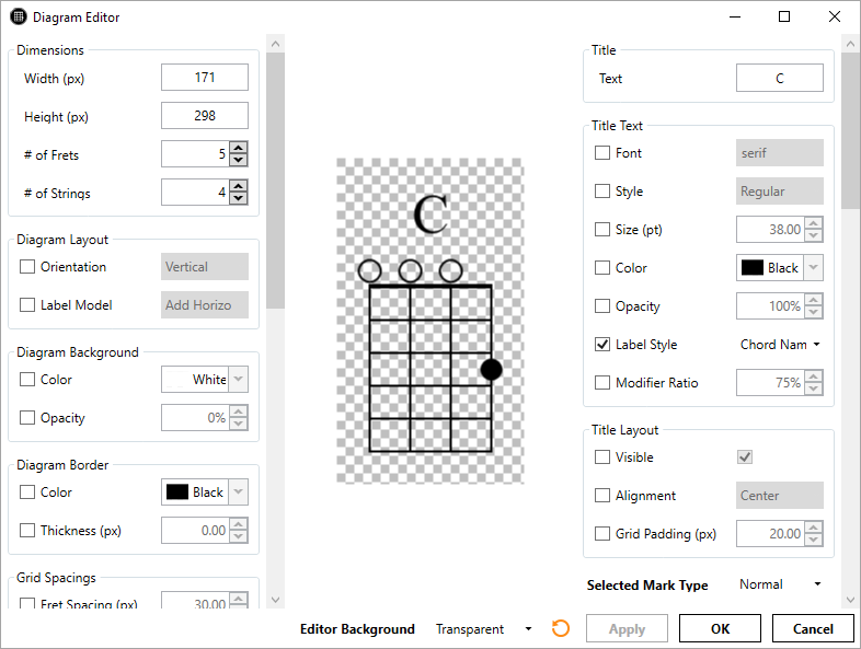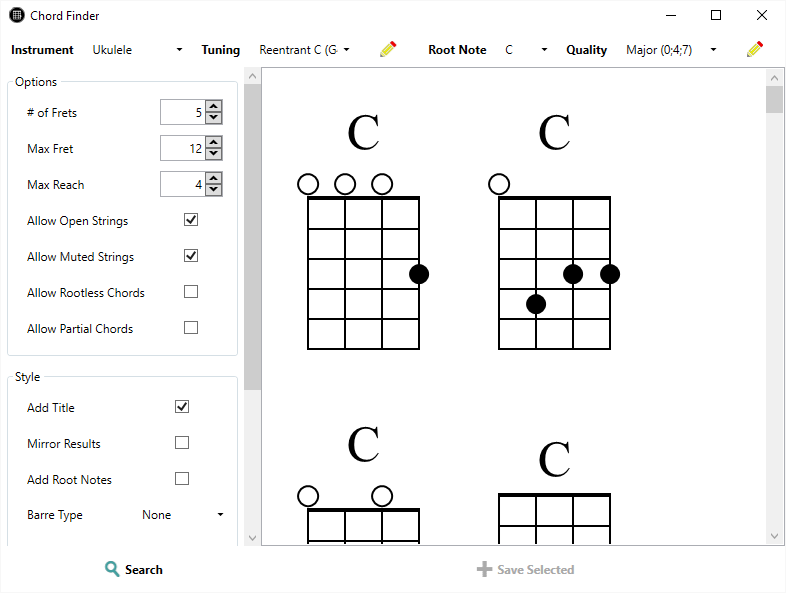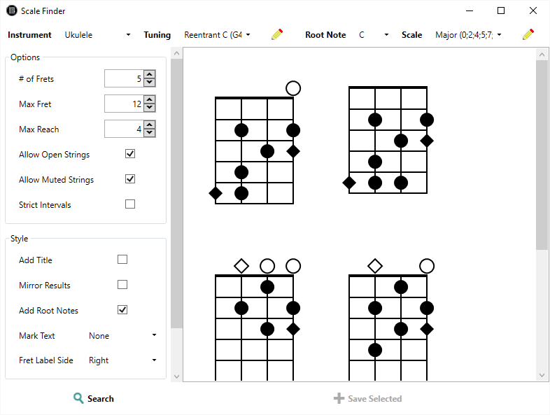 Create clean, scalable, fretboard diagramsExtensive styling optionsFind chords for all your instruments and tunings with the Chord FinderFind scales for all your instruments and tunings with the Scale FinderSave and maintain your collections of diagrams in the Diagram LibraryExport your diagrams as SVG, JPG, or PNG imagesRich Diagram Editor