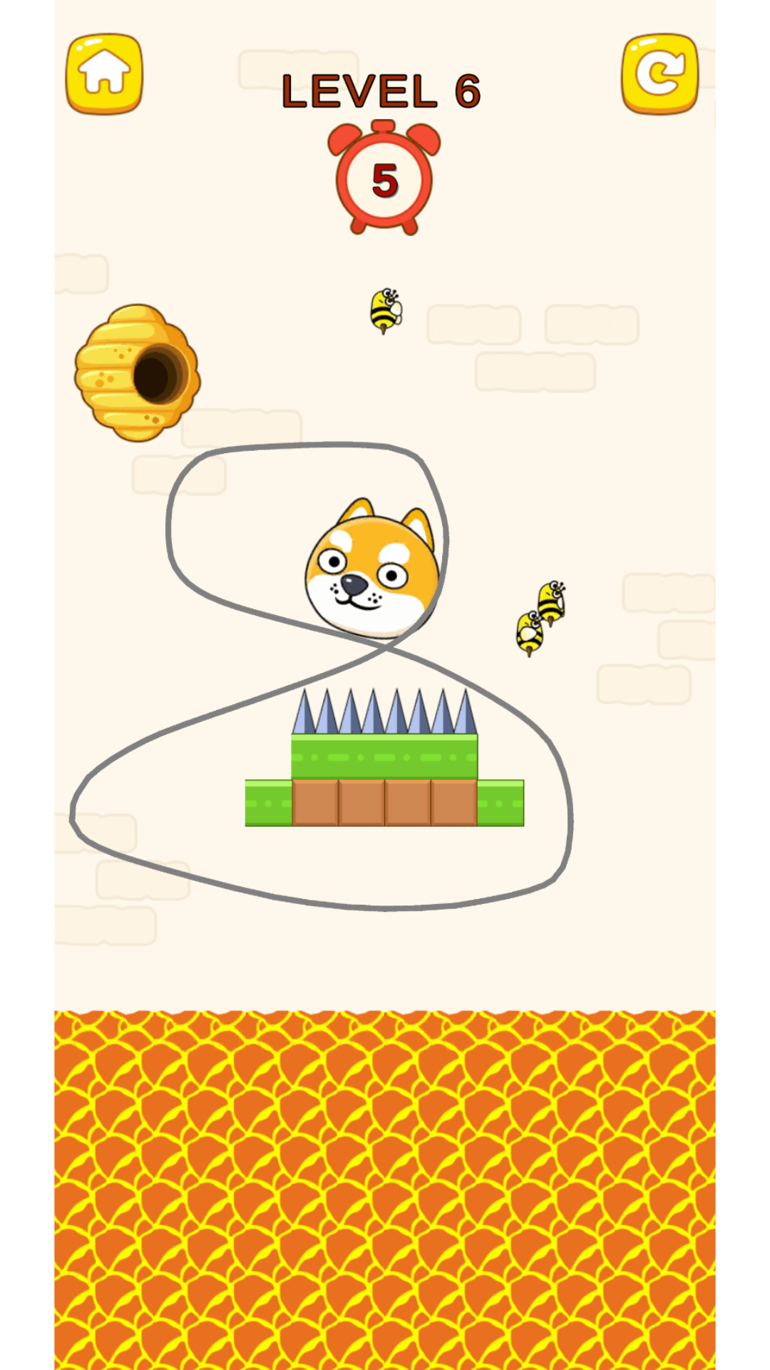 Save The Dog is a casual puzzle game. You draw lines with your fingers to create walls that protect the dog from attacks by bees in the hive. You need to protect the dog with the painted wall for 10 seconds during the attack of the bees, hold on and you will win the game. Use your brain to save the doge.