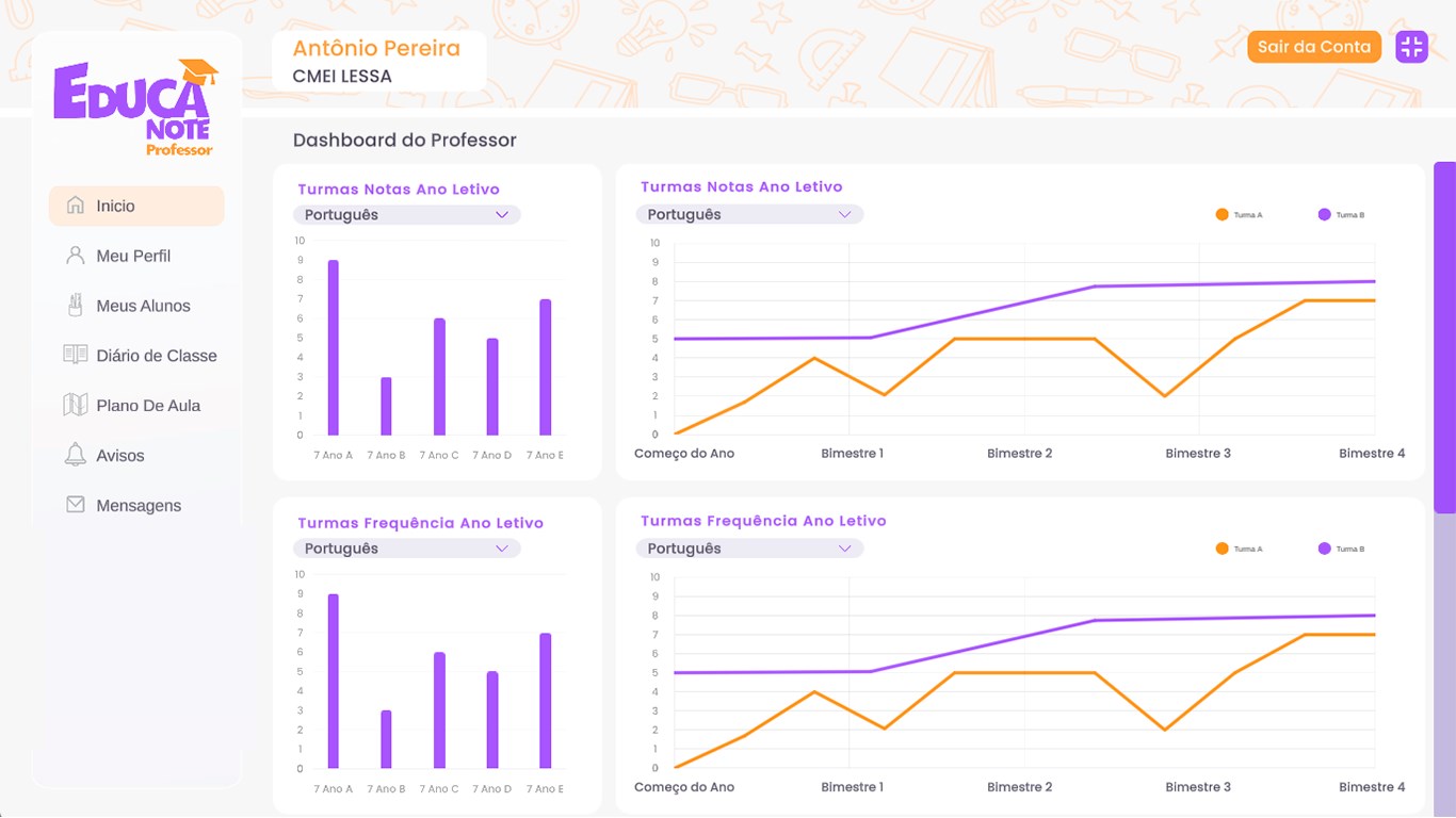 Gestão de alunos, notas, meus avisos e muitos outros.
