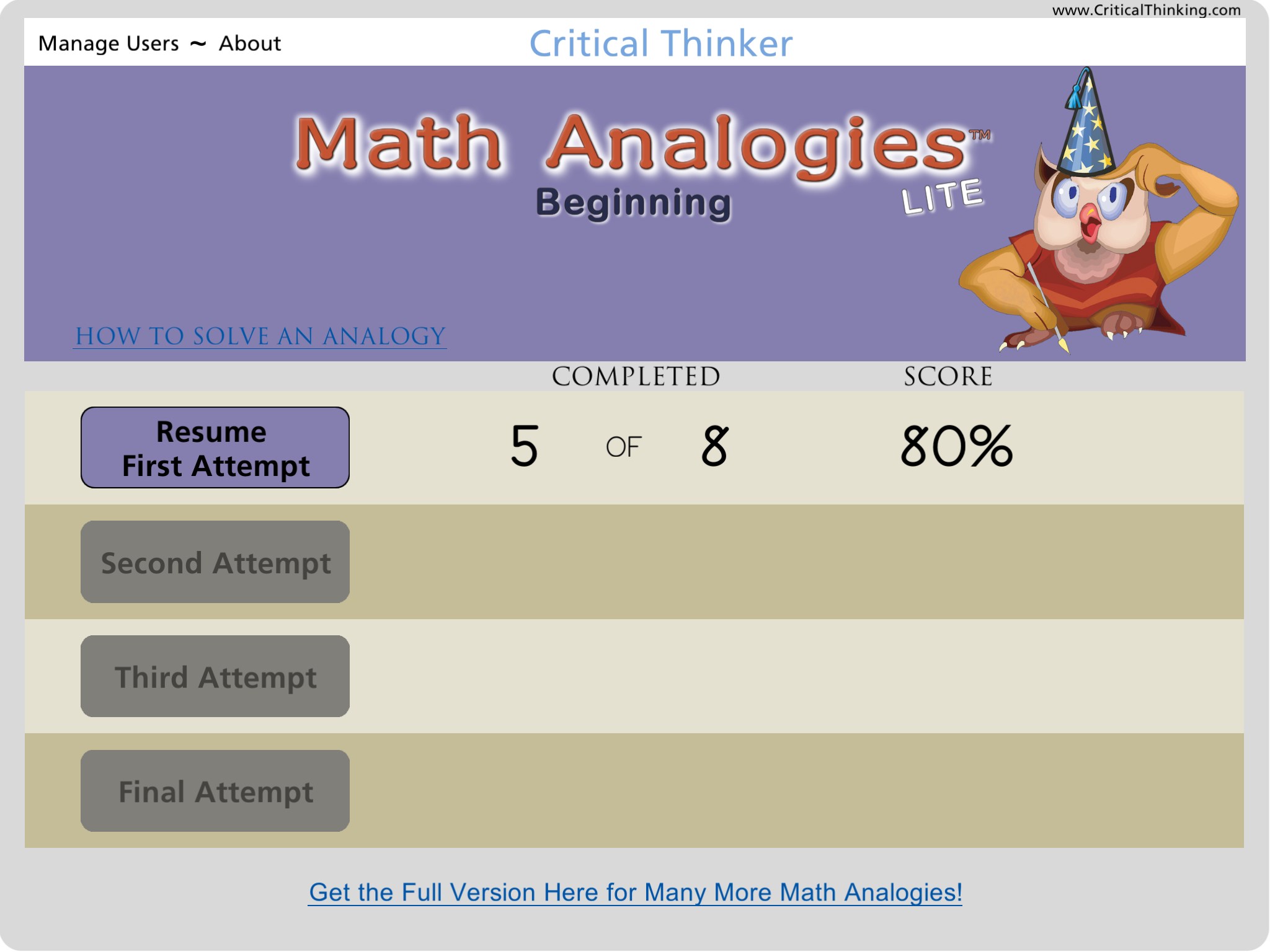 Step 4: Use Math Analogies™ Beginning (Free)
