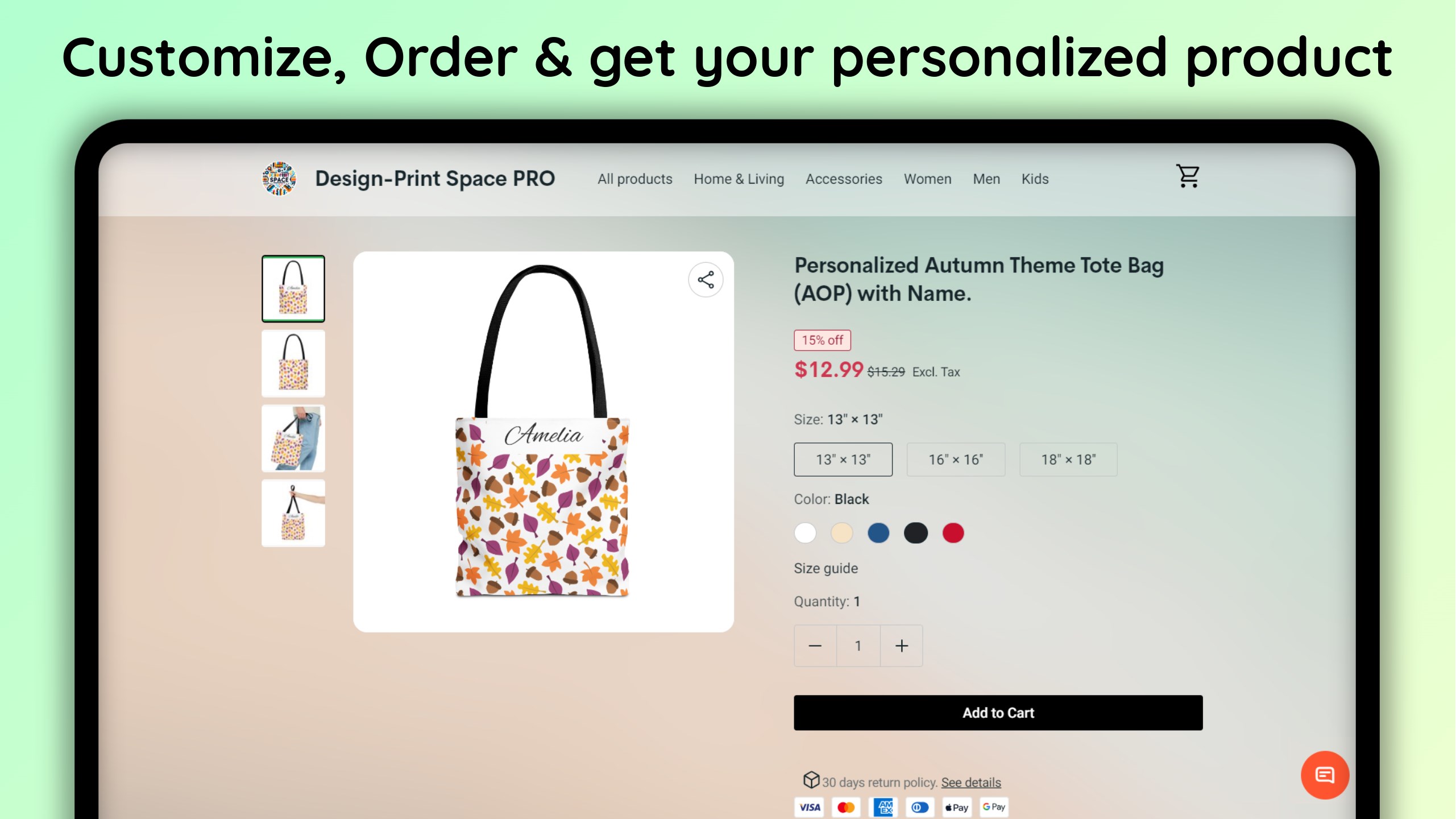 Shop: Browse and personalize products from our exclusive collection, then place your order with ease.