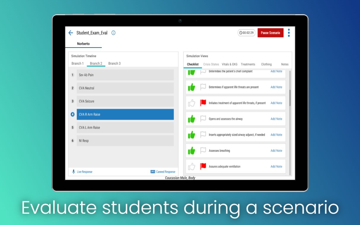 The PerSim® Controller is the easy to use interface for controlling all the functions of PerSim®. This includes logging trainee performance information , Hololens live streaming, applying treatments, connecting the PerSim® Vitals Monitor, speaking for PerSim®, creating thousands of custom scenarios through the user friendly scenario editor, and many more.
