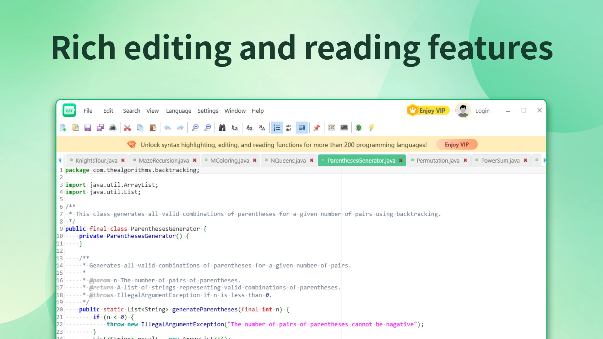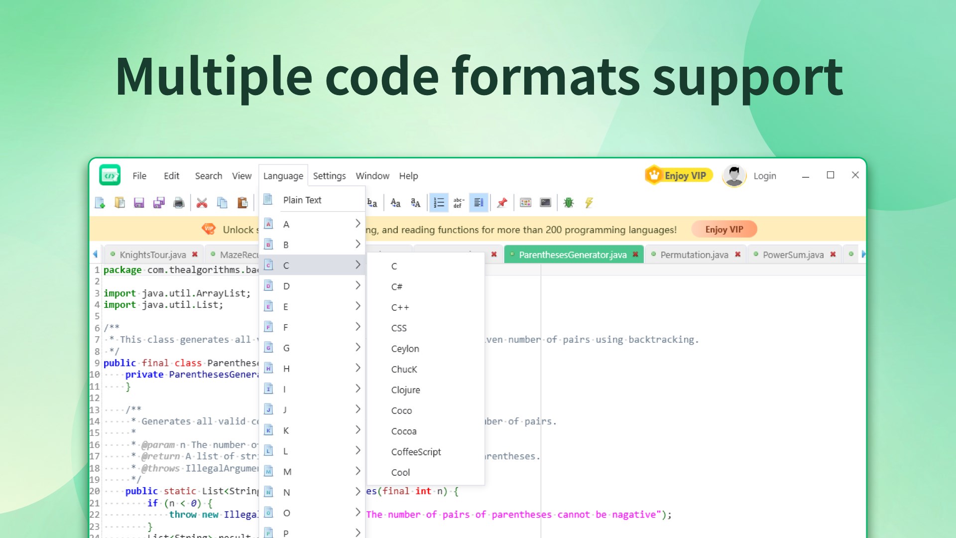 This software has excellent file compatibility and can support opening more than 200 different text files, including various popular code files, such as Python, Java, C++, HTML, etc. Whether you are a programmer, web designer, or other user who needs to process text files, Super Text Editor can meet your needs, so you no longer have to worry about file format compatibility issues.