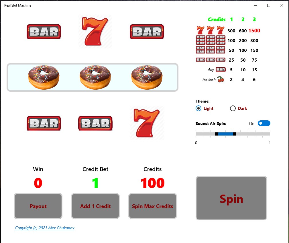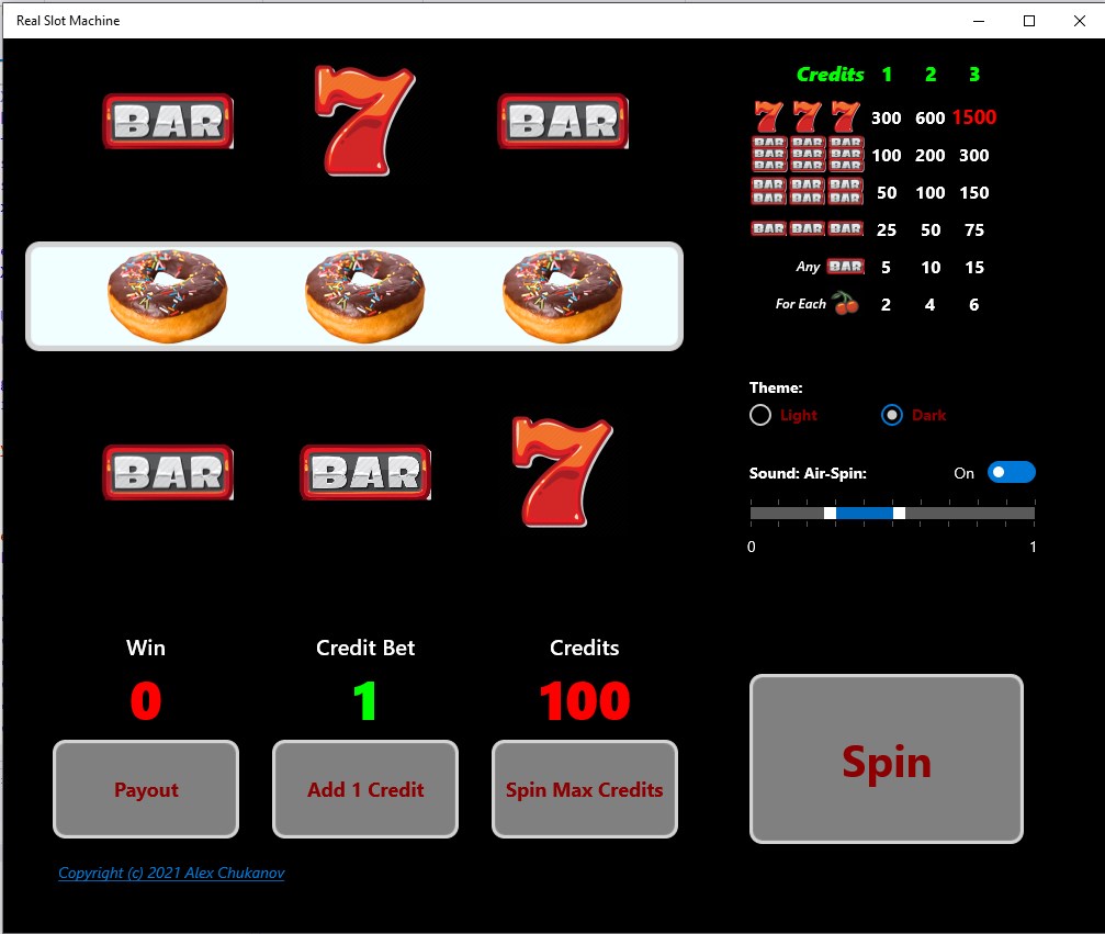A simulator of the well-known 3 reels slot machine with