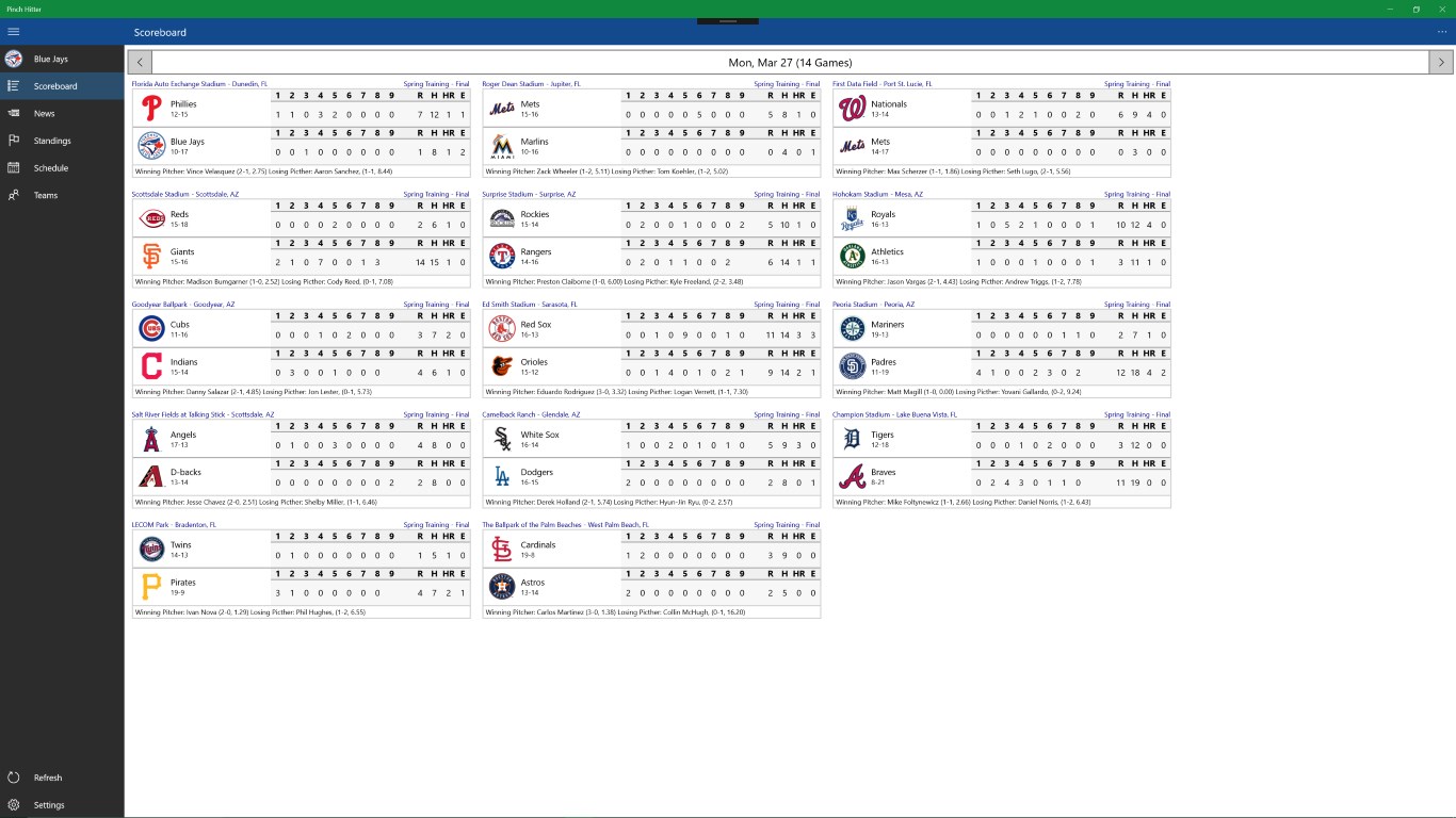 Keep up to date with the scores and news from your favorite Major League Baseball teams.