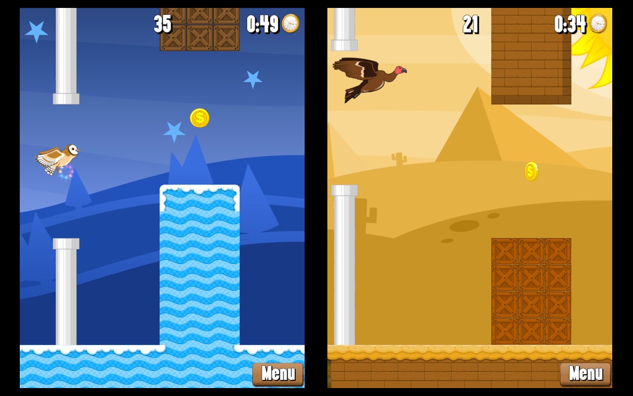 Fly with your favorite bird and take the challenge: pass inside tunnels, pipes and earn as much money as you can!
