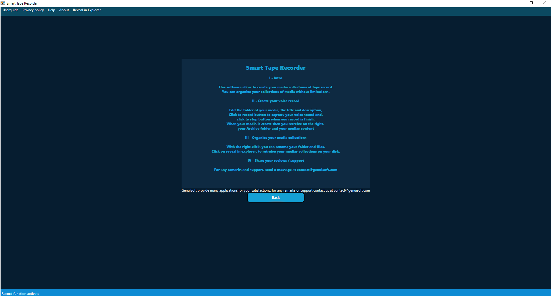 For any comments or support, you can contact us from [email protected] or visit www.genuisoft.com.