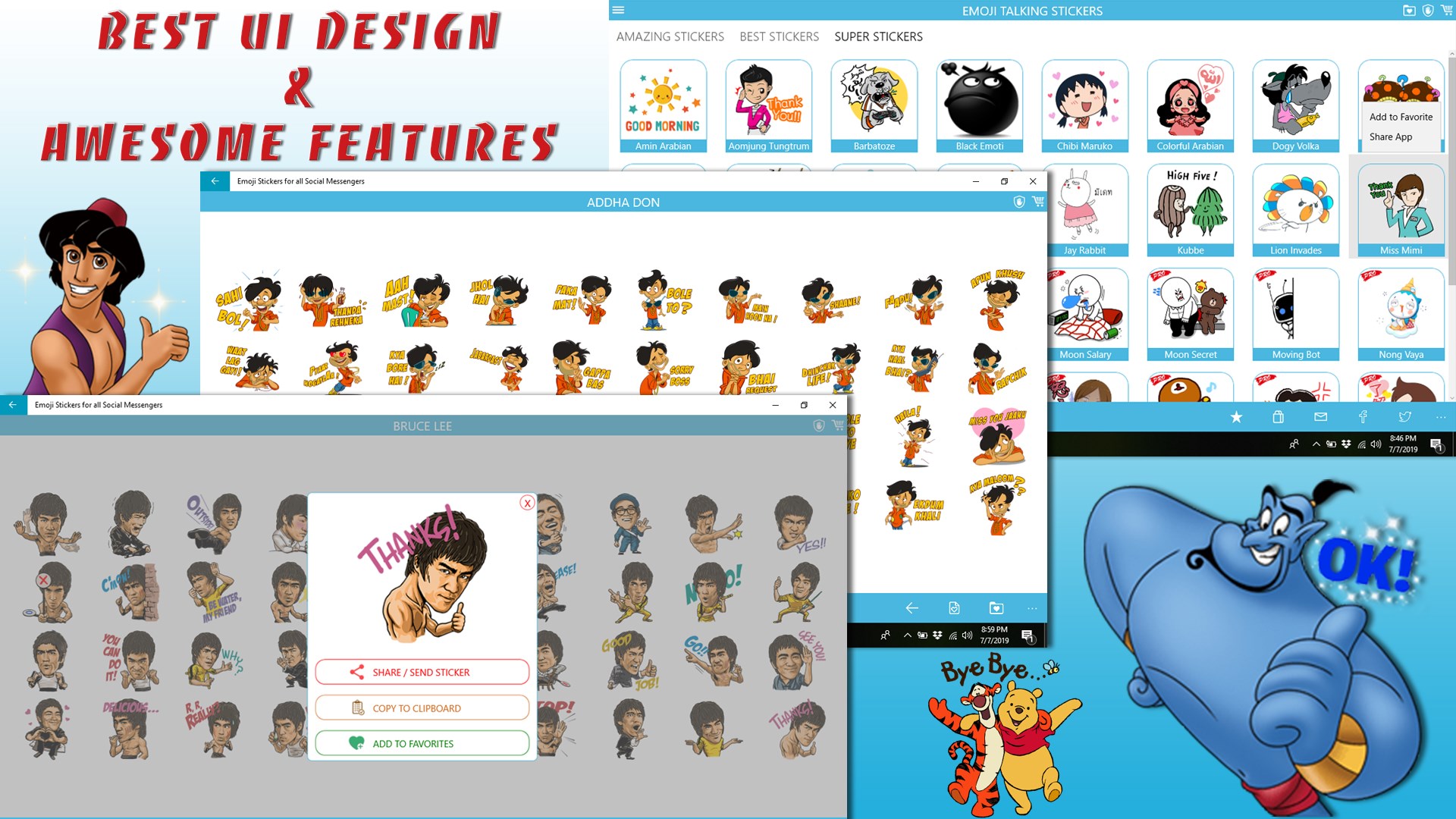 ✔ Share sticker with friends, Add sticker as Favorite and Copy to Clipboard and then paste anywhere inside or outside the App.